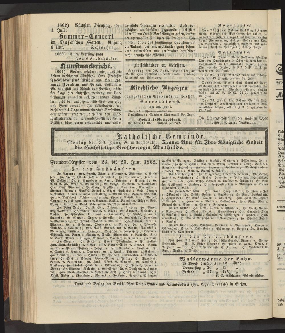 Fremden-Register vom 23. bis 25. Juni 1862.