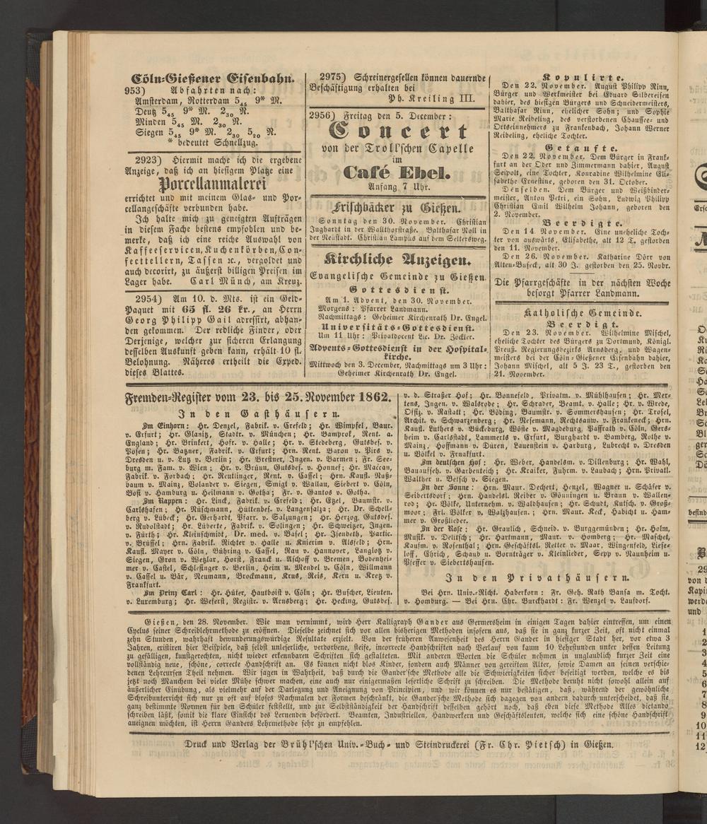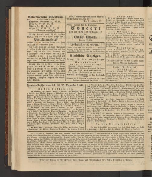 Fremden-Register vom 23. bis 25. November 1862.