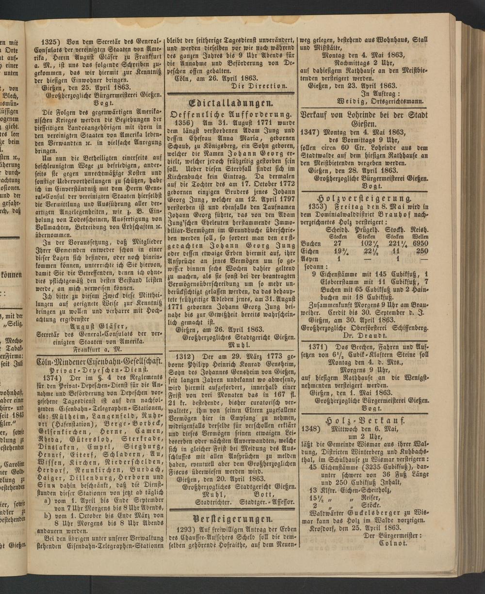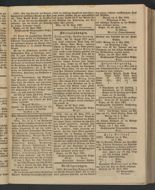 Gießen, Den 23. April 1863. In Auftrag: WeiDig, Ortsgerichtsmann.