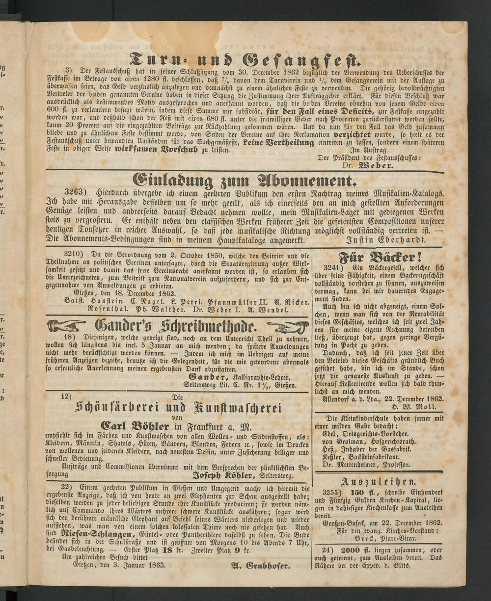 Gießen, den 18. December 1862.