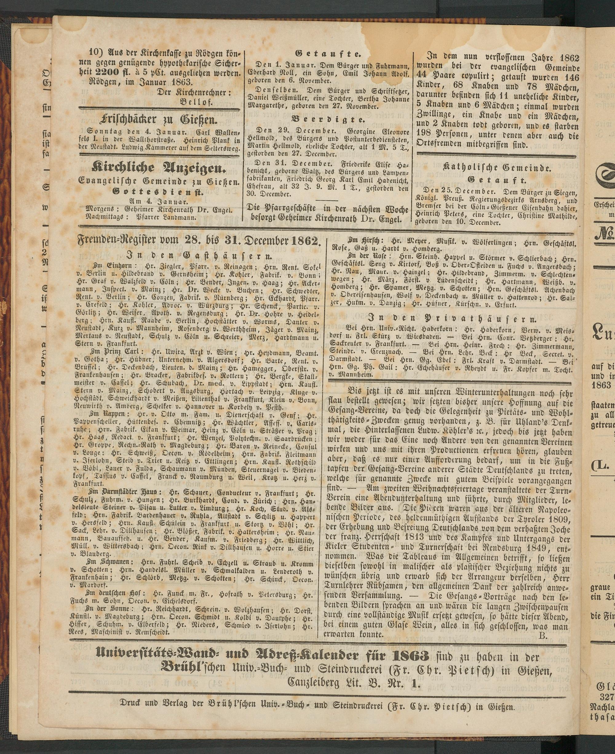 Universttäts-Wan- und Adreß-Kalen-er für 1863 sind zu haben in der Brühl'schen Univ.-Buch- und Steindruckerei (Fr. Chr. Pietsch) in Gießen, Canzleiberg Lit. B. Nr. 1.