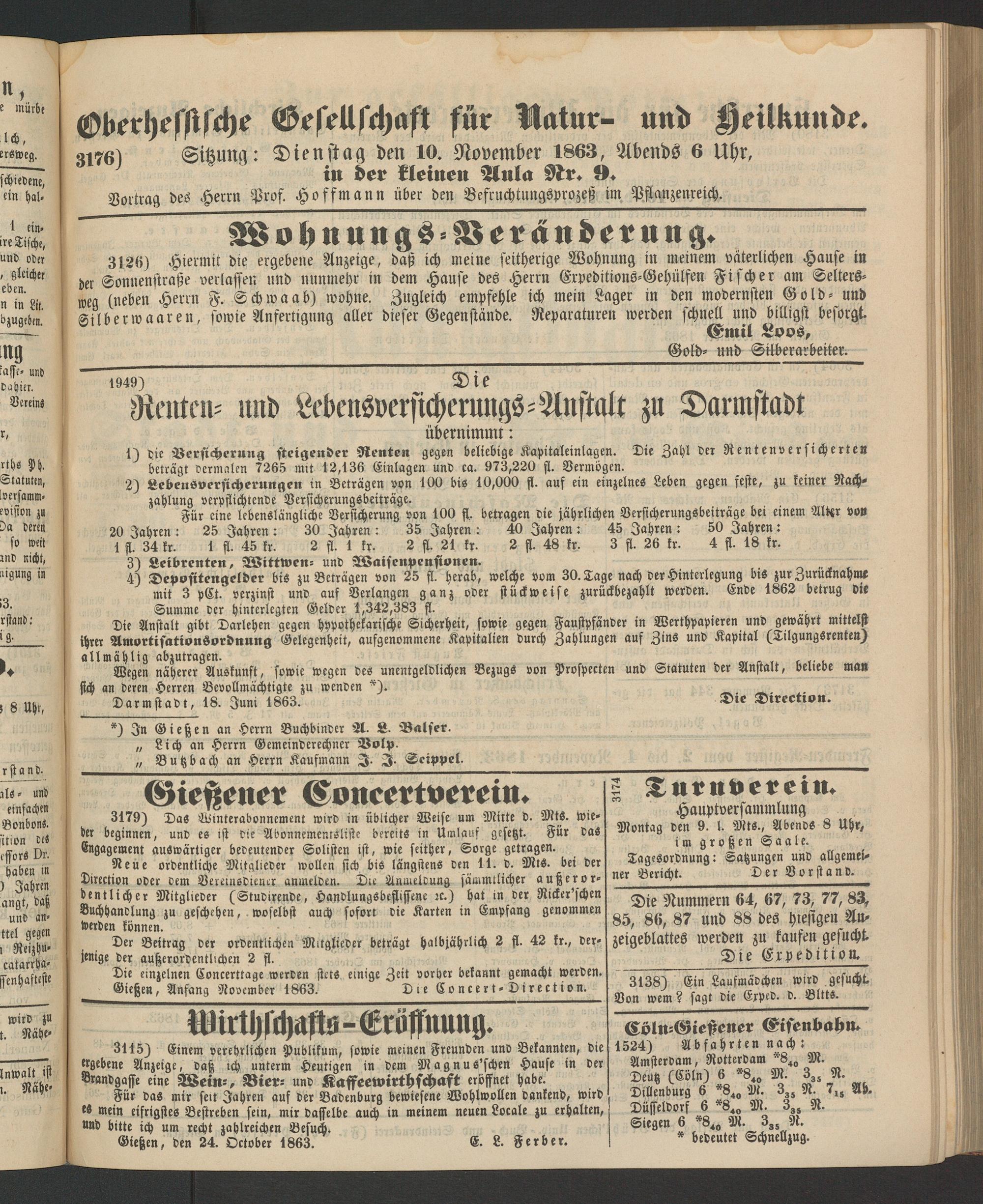 Oberhefstfche Gesellschaft für Natur- und Heilkunde 01^6) Sitzung: Dienstag den 10. November 1863, Abends 6 Uhr, in öer kleinen Aula Nr. 9.