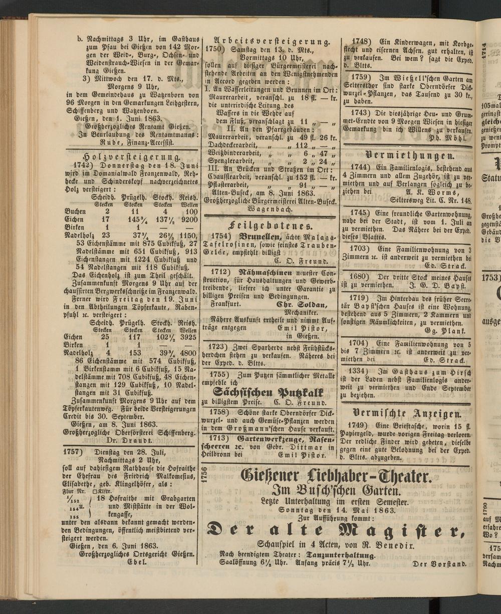 Gießen, den 1. Juni 1863. Großherzogliches Rentamt Gießen.