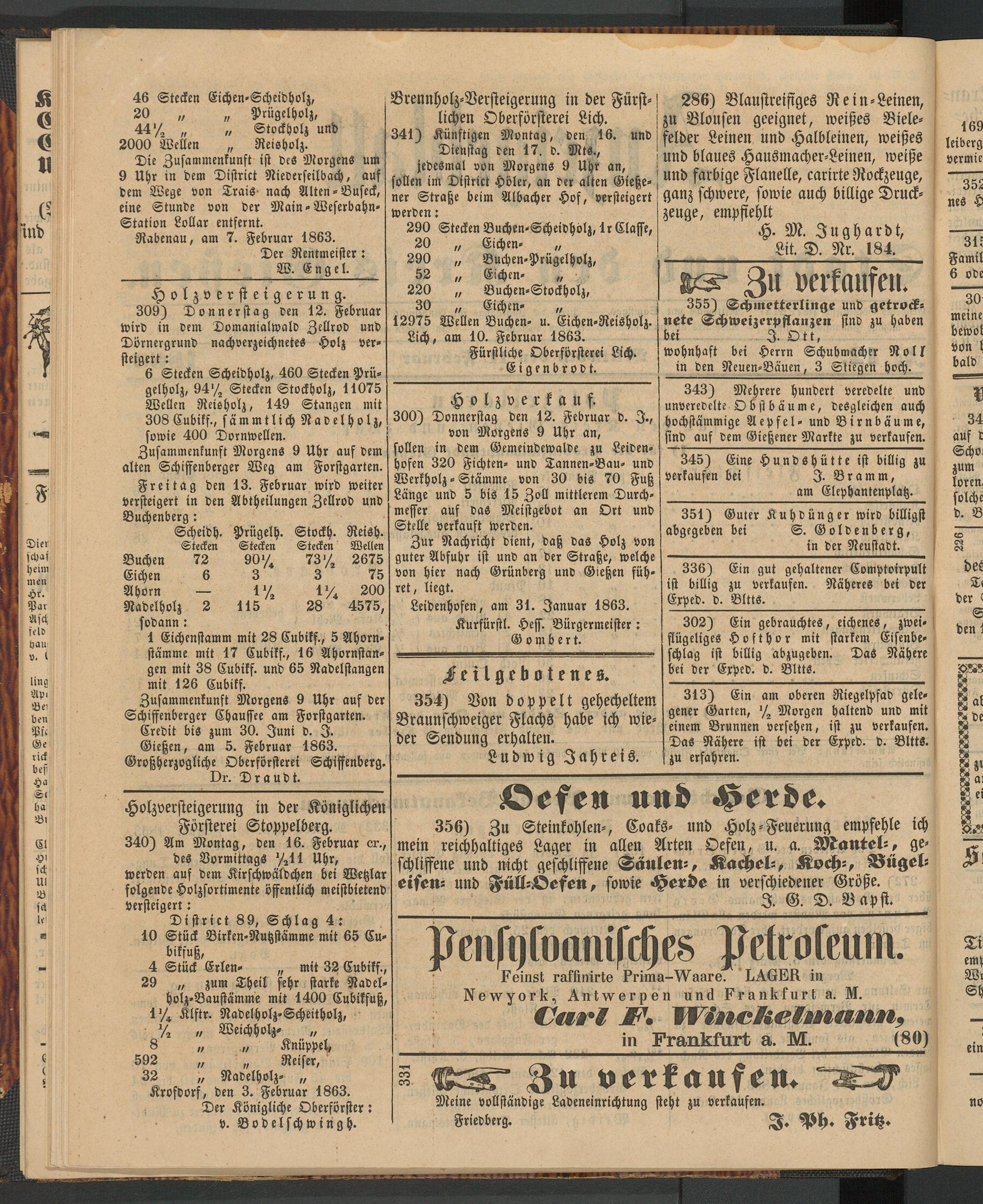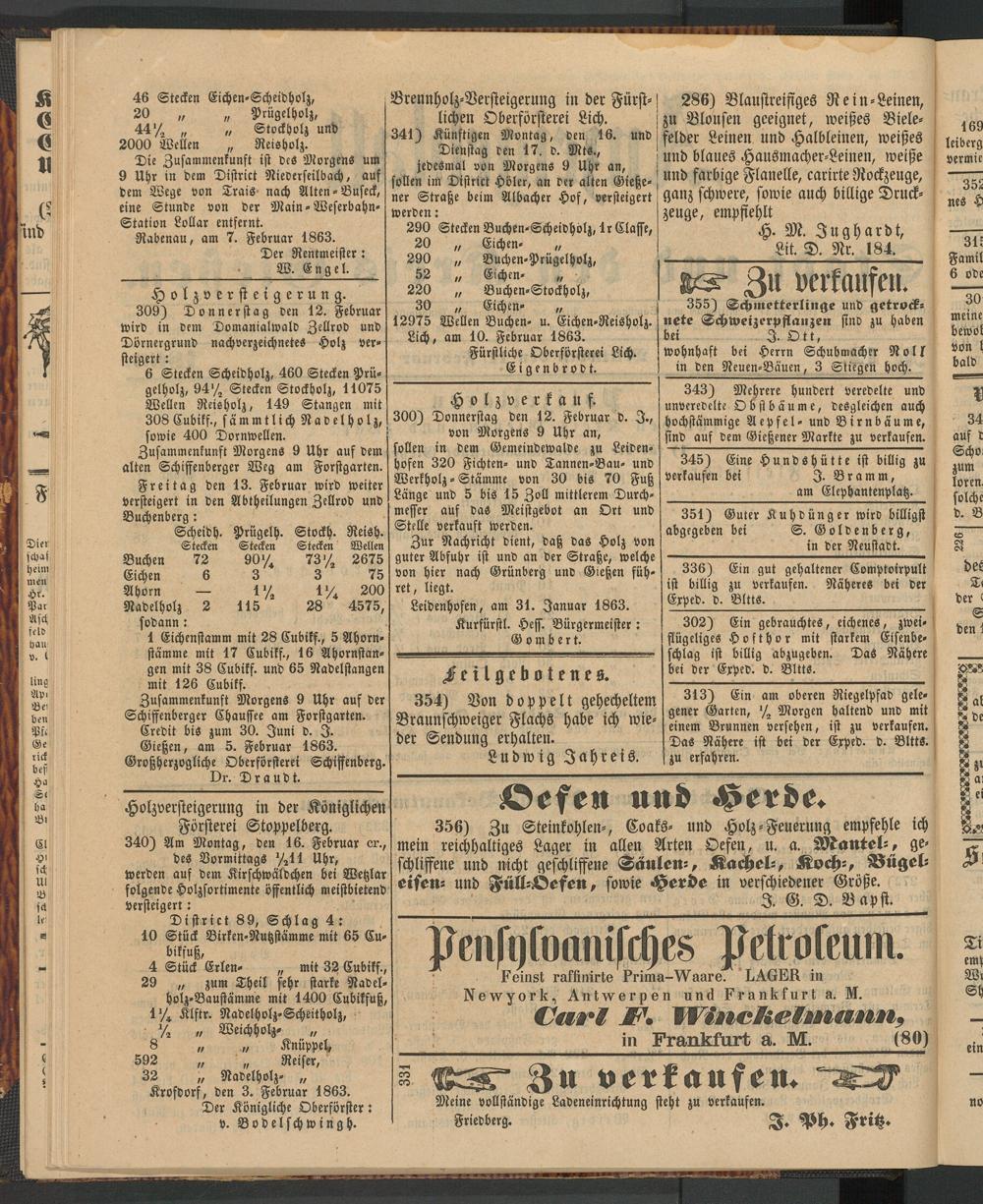 12975 Wellen Buchen- u. Eichen-Reisholz. Lich, am 10. Februar 1863.