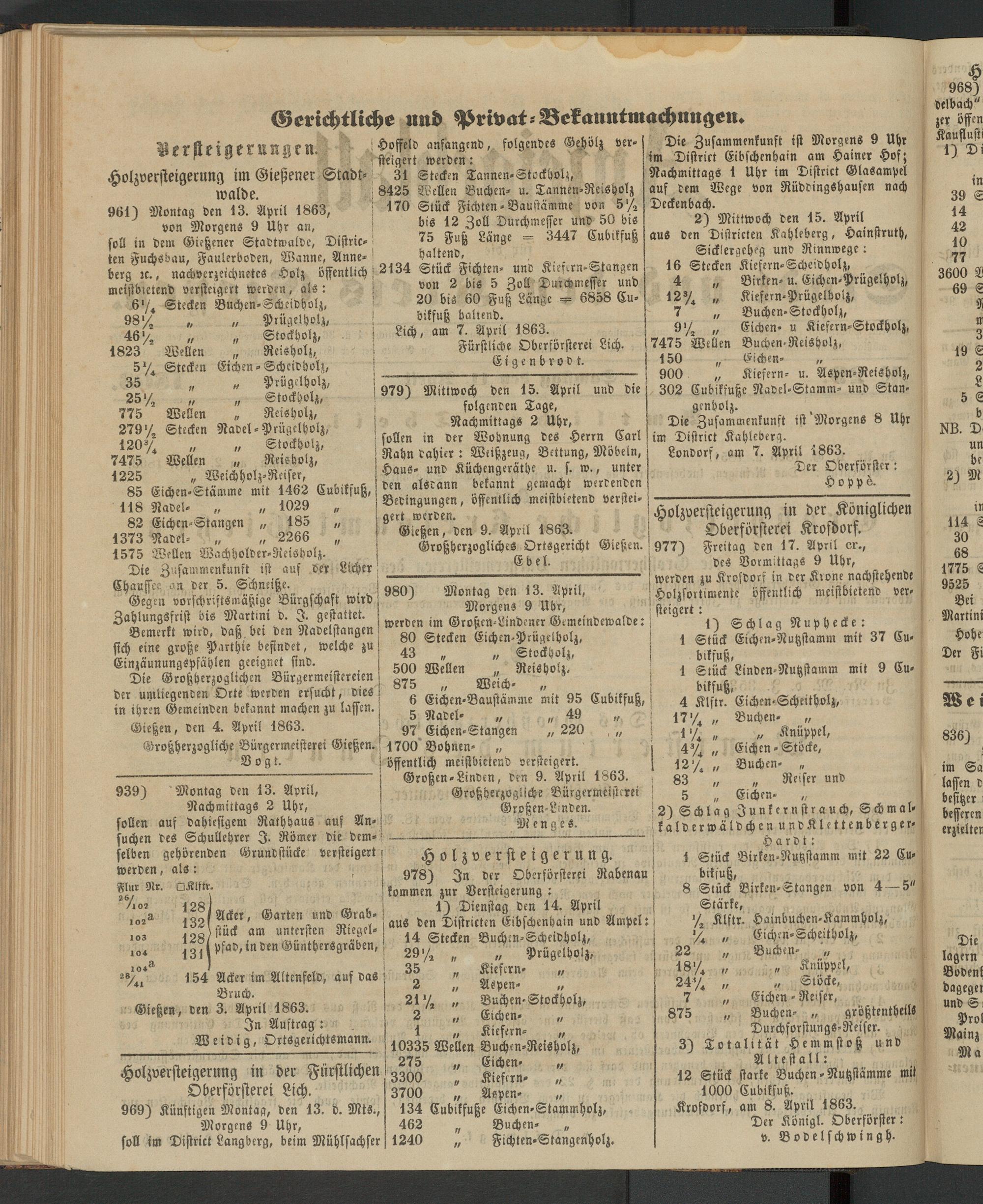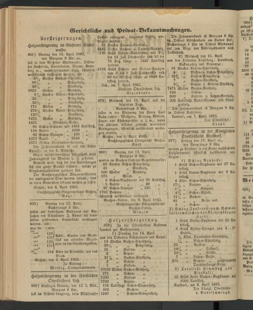 Holzversteigernng in der Fürstlichen Oberförstern Lich.