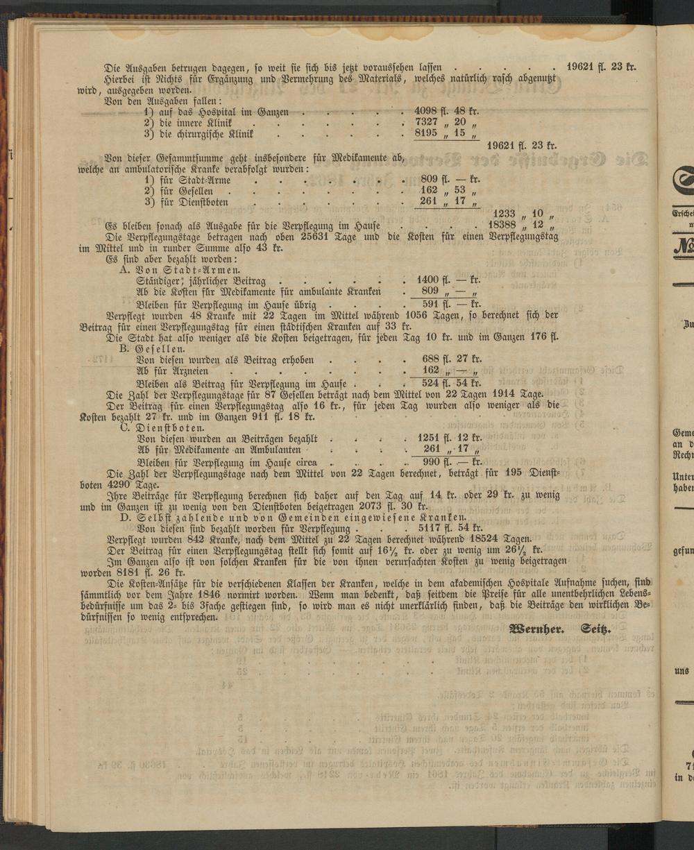 Die Stadt hat also weniger als die Kosten beigetragen, für jeden Tag 10 fr. und im Ganzen 176 fl.