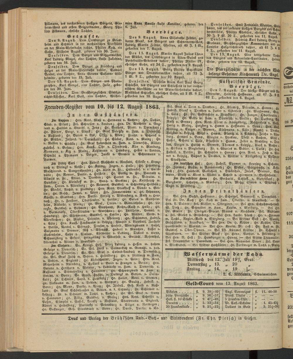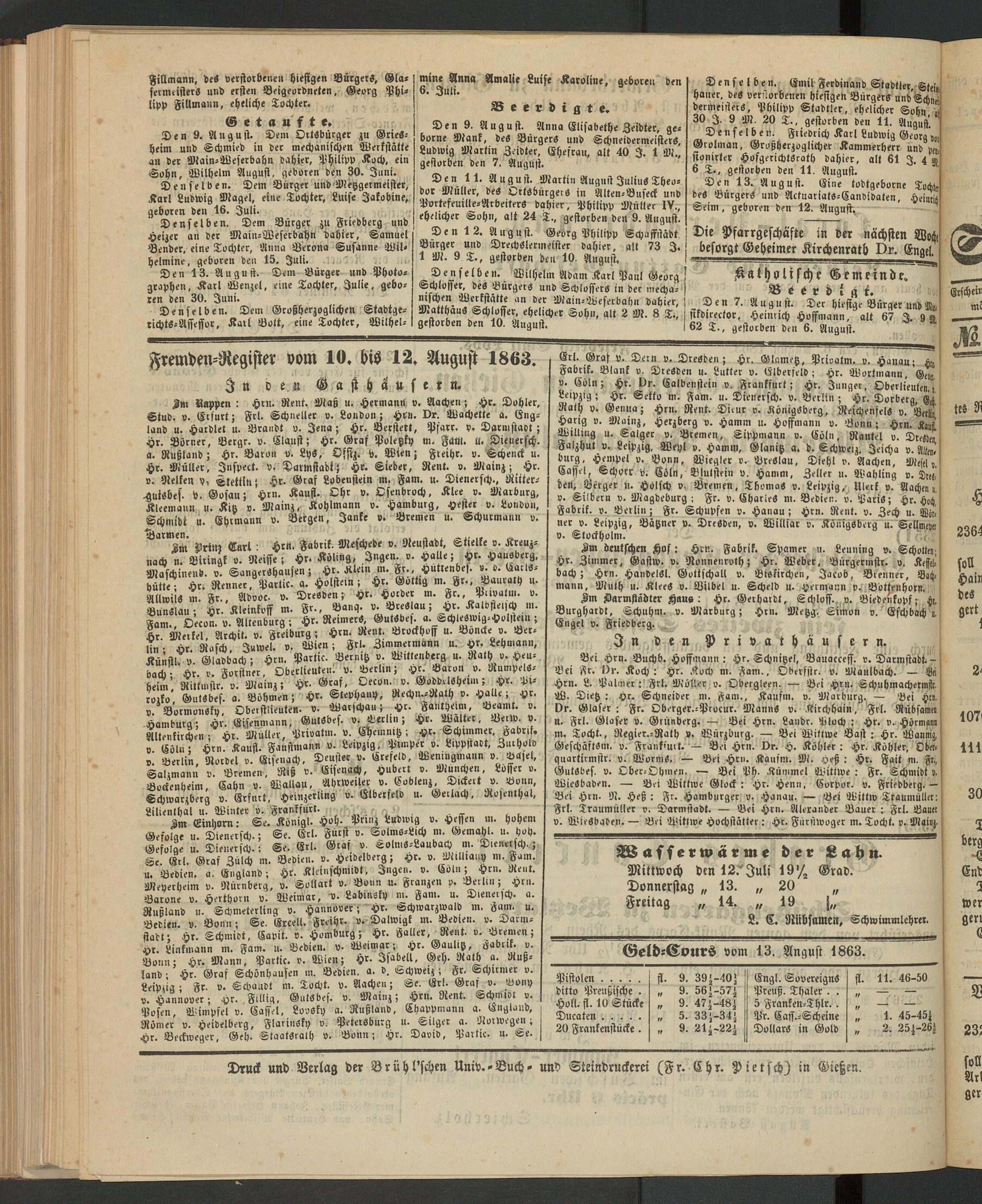 Fremden-Register vom 10. bis 12. August 1863.