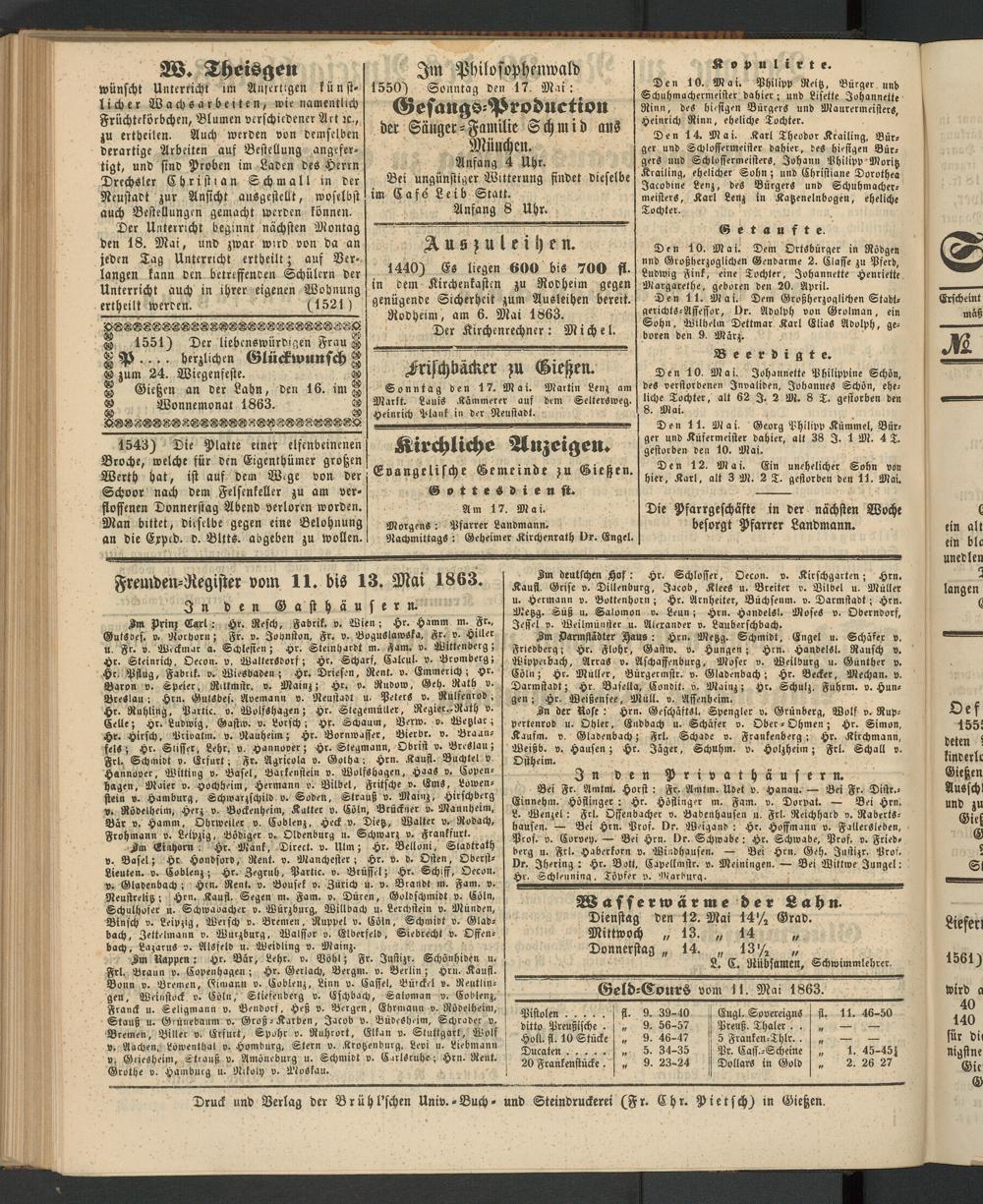 § Gießen an der Lahn, den 16. int ® ® Wonnemonat 1863. ®
