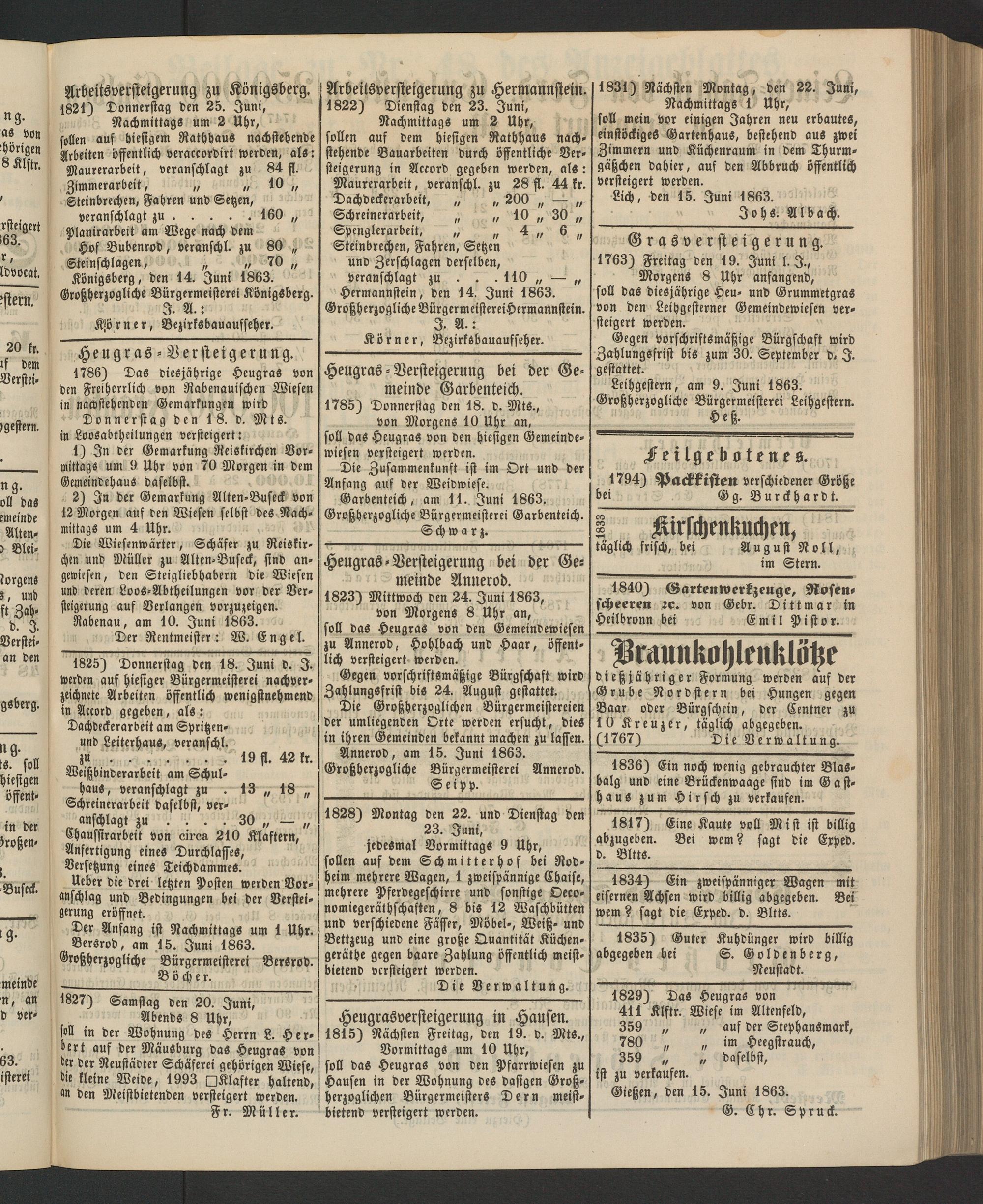 Leihgestern, am 9. Juni 1863. Großherzogliche Bürgermeisterei Leihgestern.