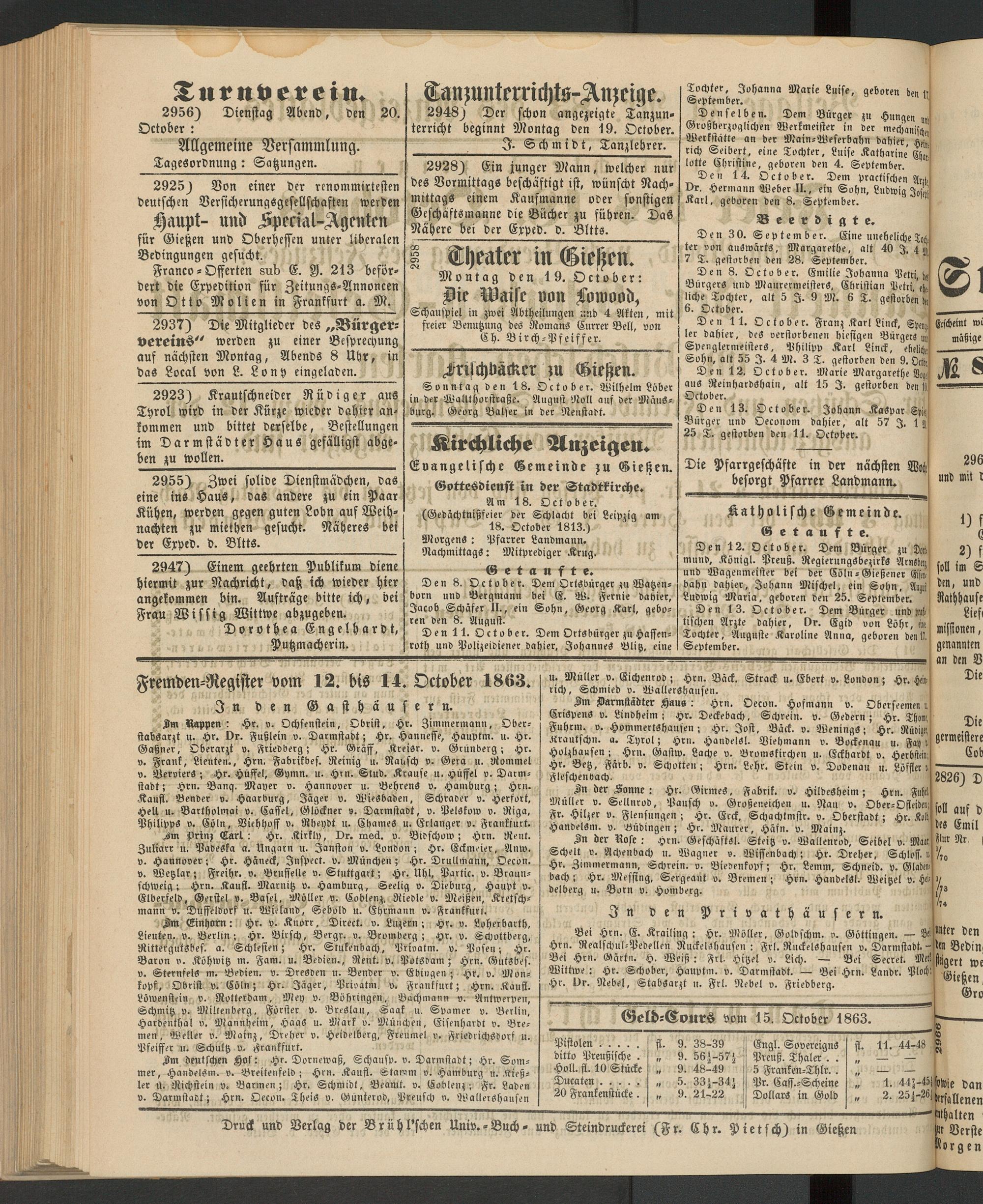 2948) Der schon angezeigte Tanzunterricht beginnt Montag den 19. October. _______ I- Schmidt, Tanzlehrer.