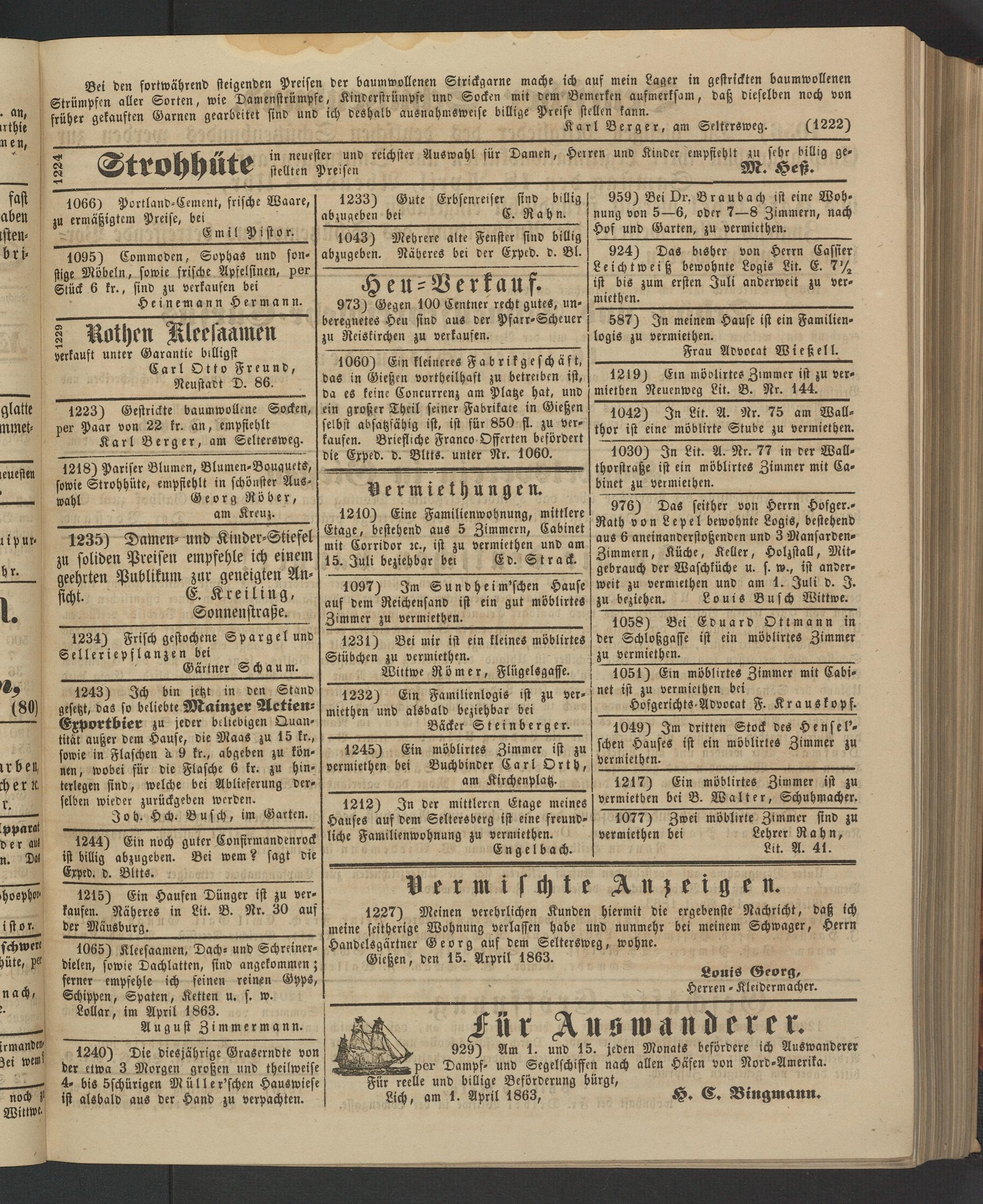 Lich, am 1. April 1863, H. C. Bingmann.
