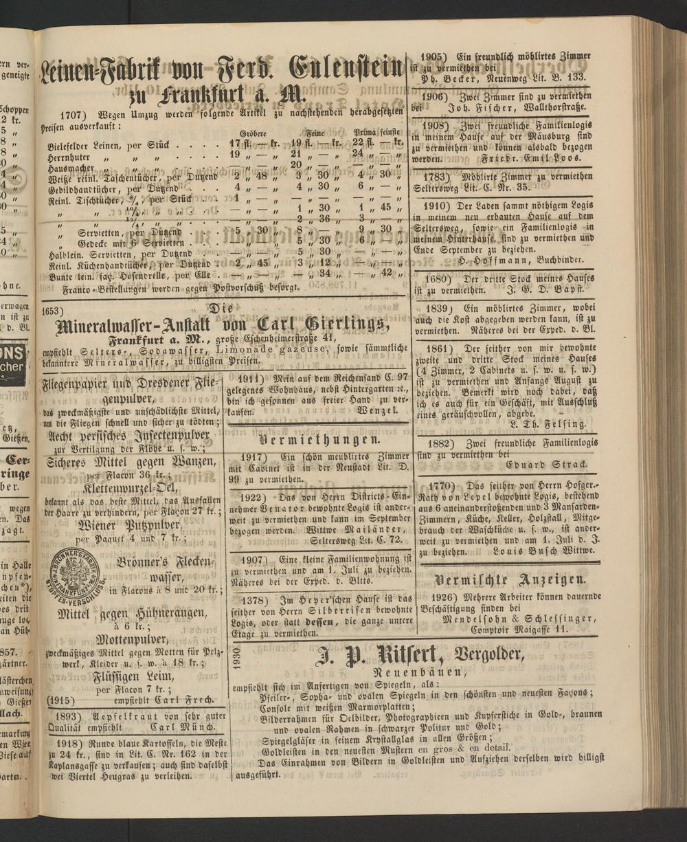 Leinen-Fabrik von Ferd. Eulenstein ;n Frankfurt a. M.