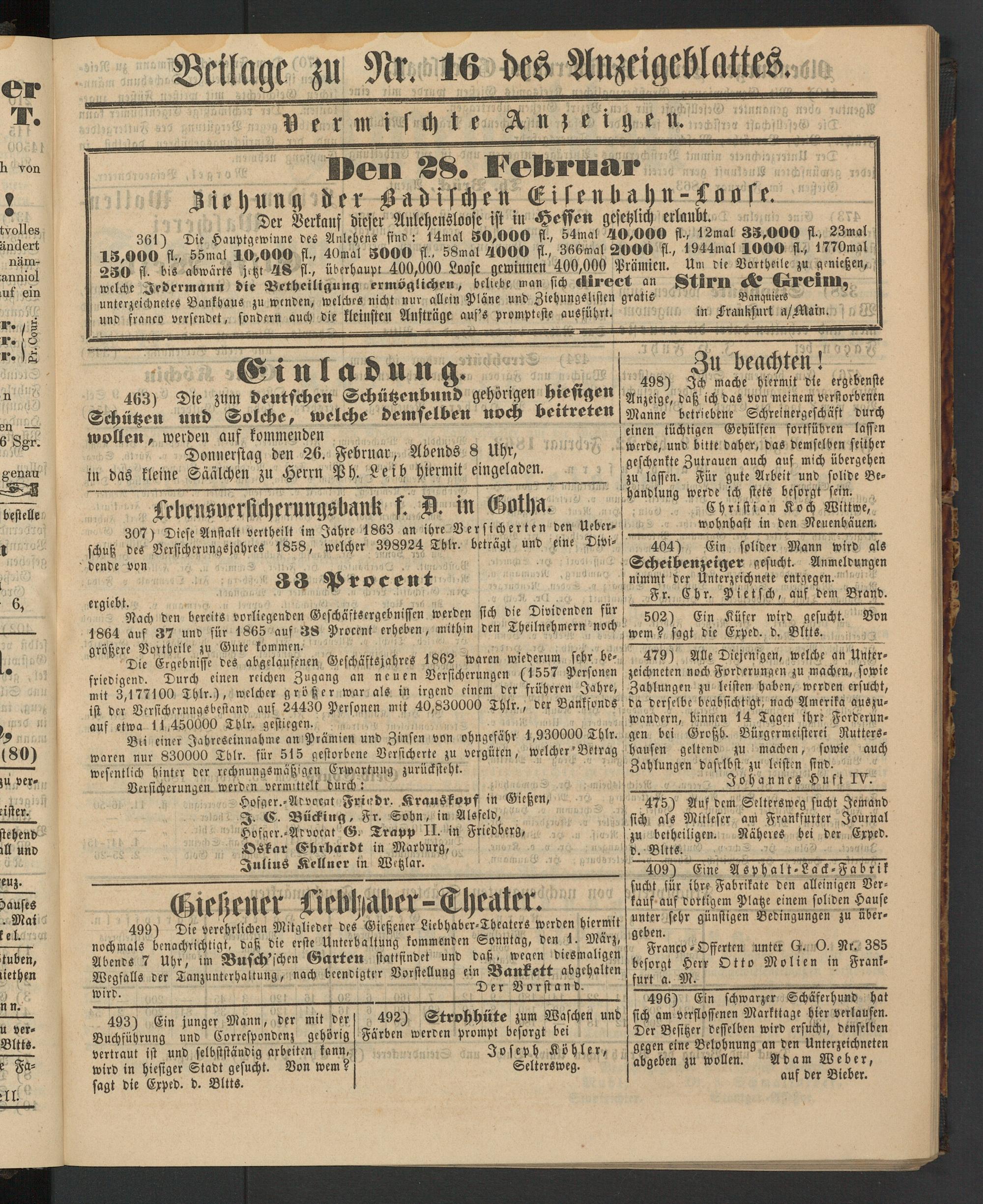 Beilage zu Nr. 16 des Anzeigeblattes.