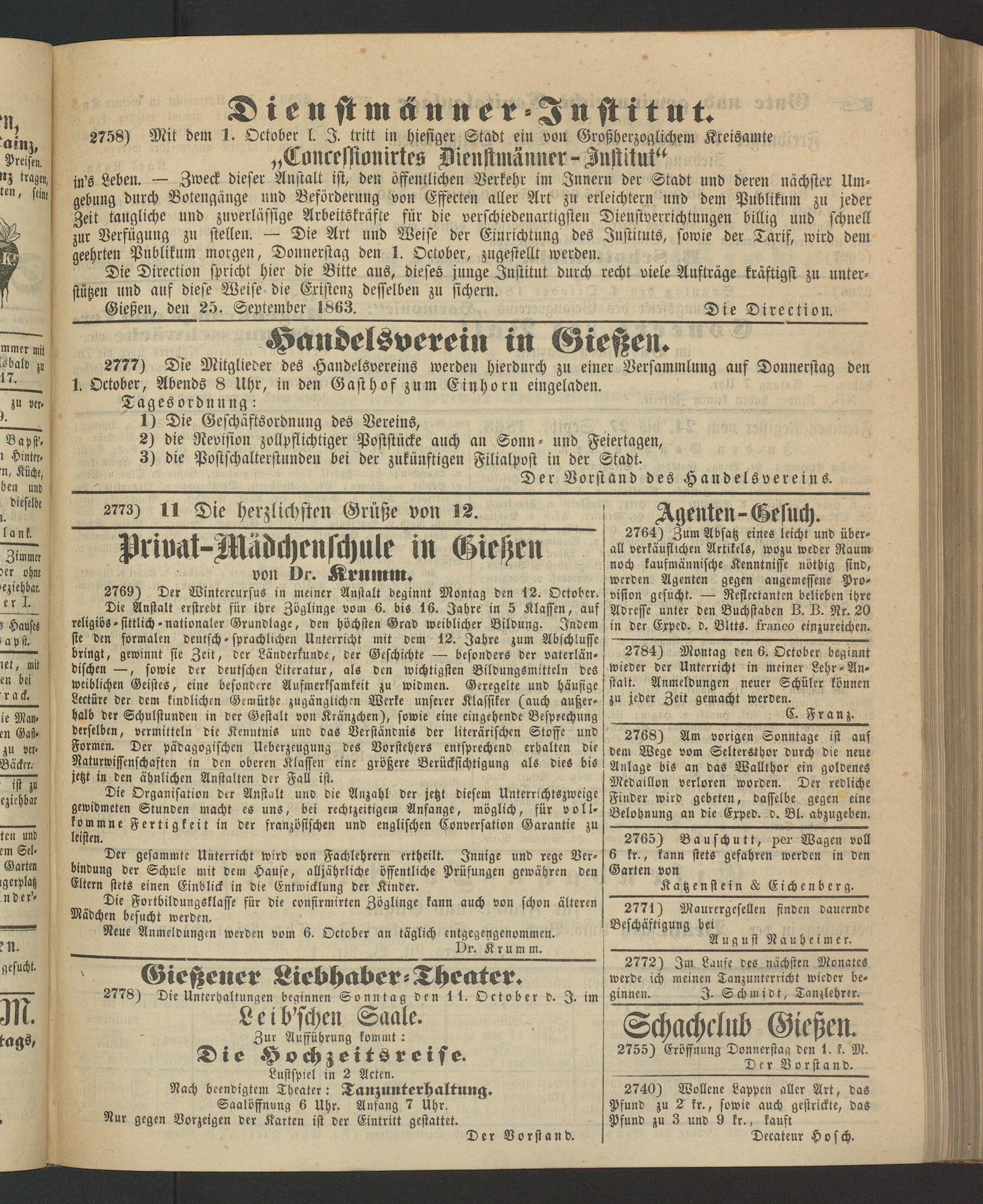 Gießen, den 25. September 1863. Die Direction.