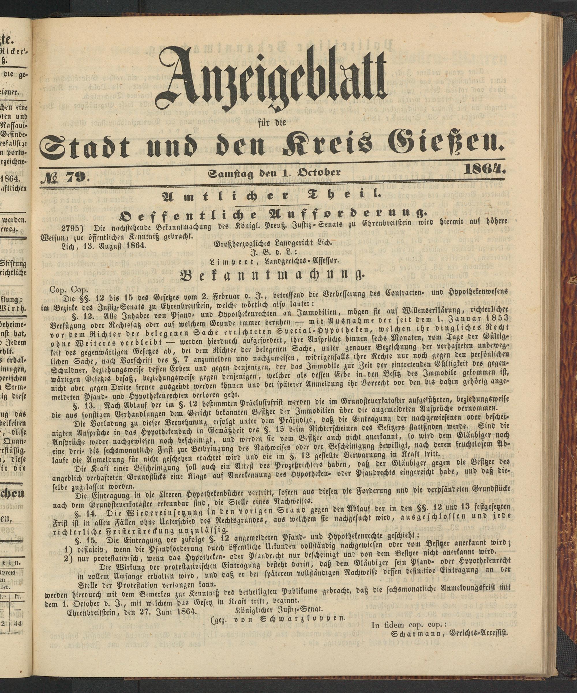 Lich, 13. August 1864. Großhcrzoglrches Landgericht Lich.