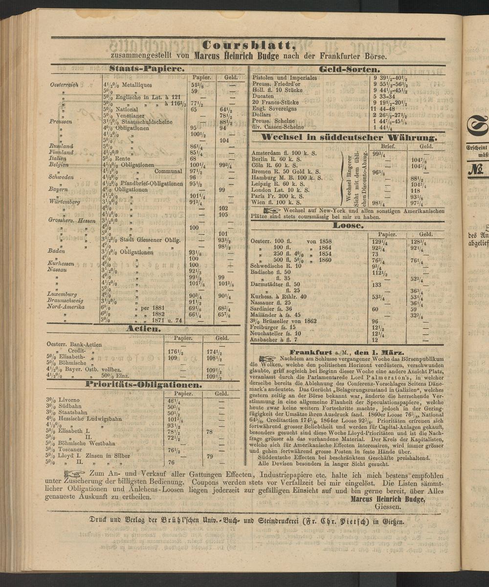 Frankfurt a./M., den 1. März.