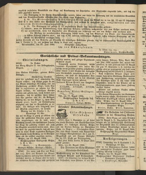 Ehrenbreitstein, den 27. Juni 1864. Königlicher Justiz-Senat.