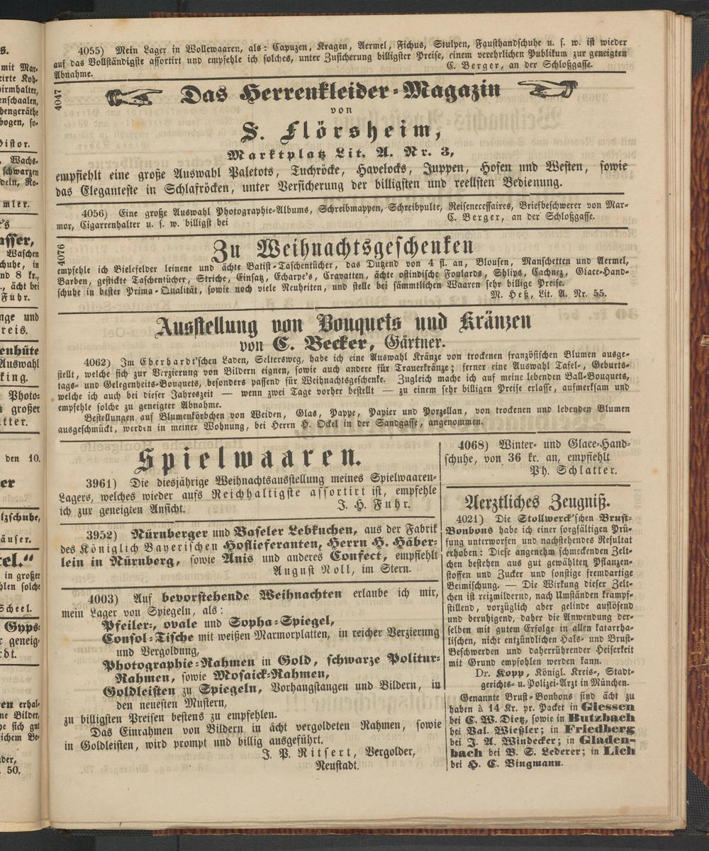 4003) Auf bevorstehende Weihnachten erlaube ich mir, mein Lager von Spiegeln, als: .
