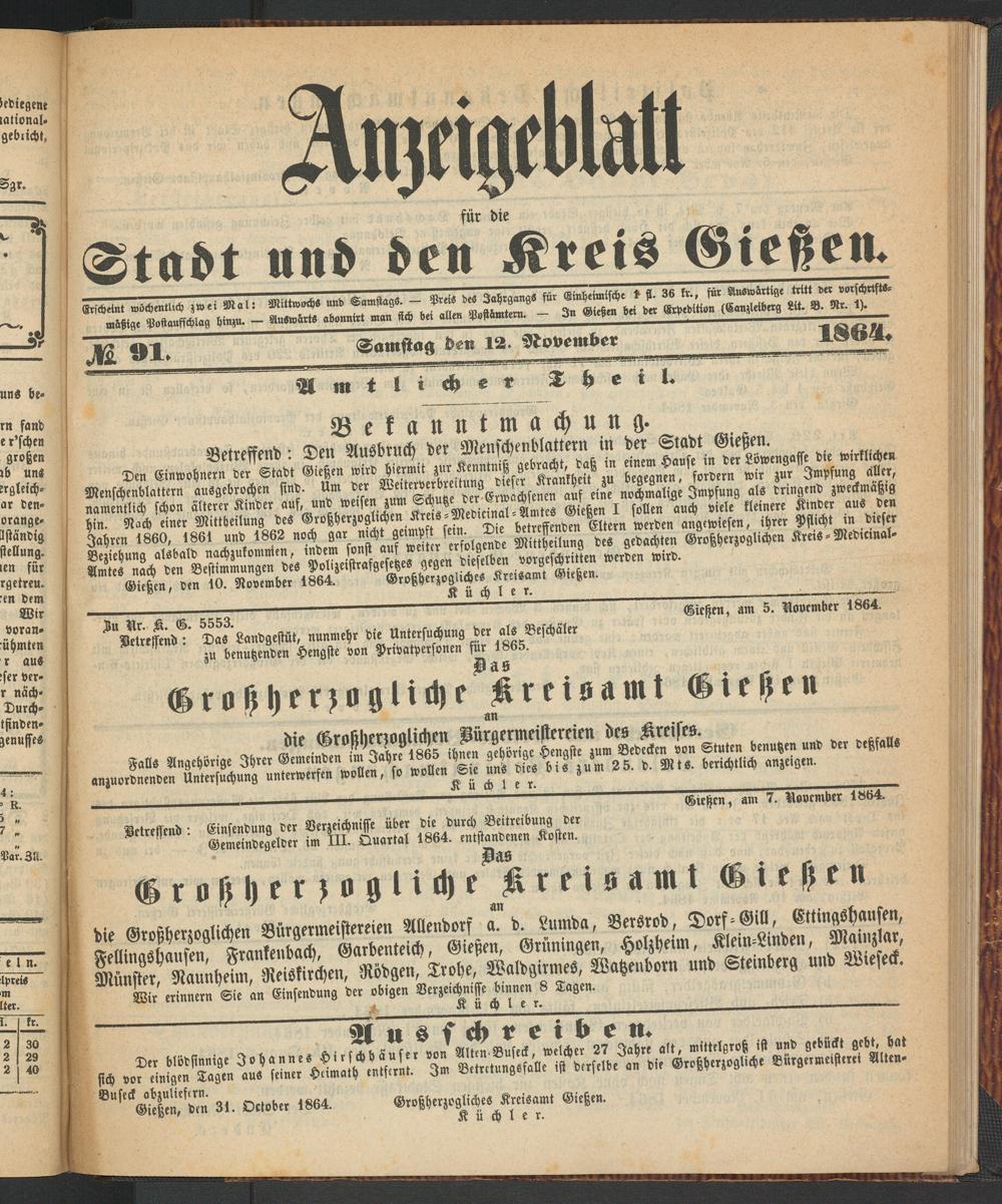 ÄSSWÄte - r ________ __ __ ___________________ _ _ Gießen, sm 7. November 1864.