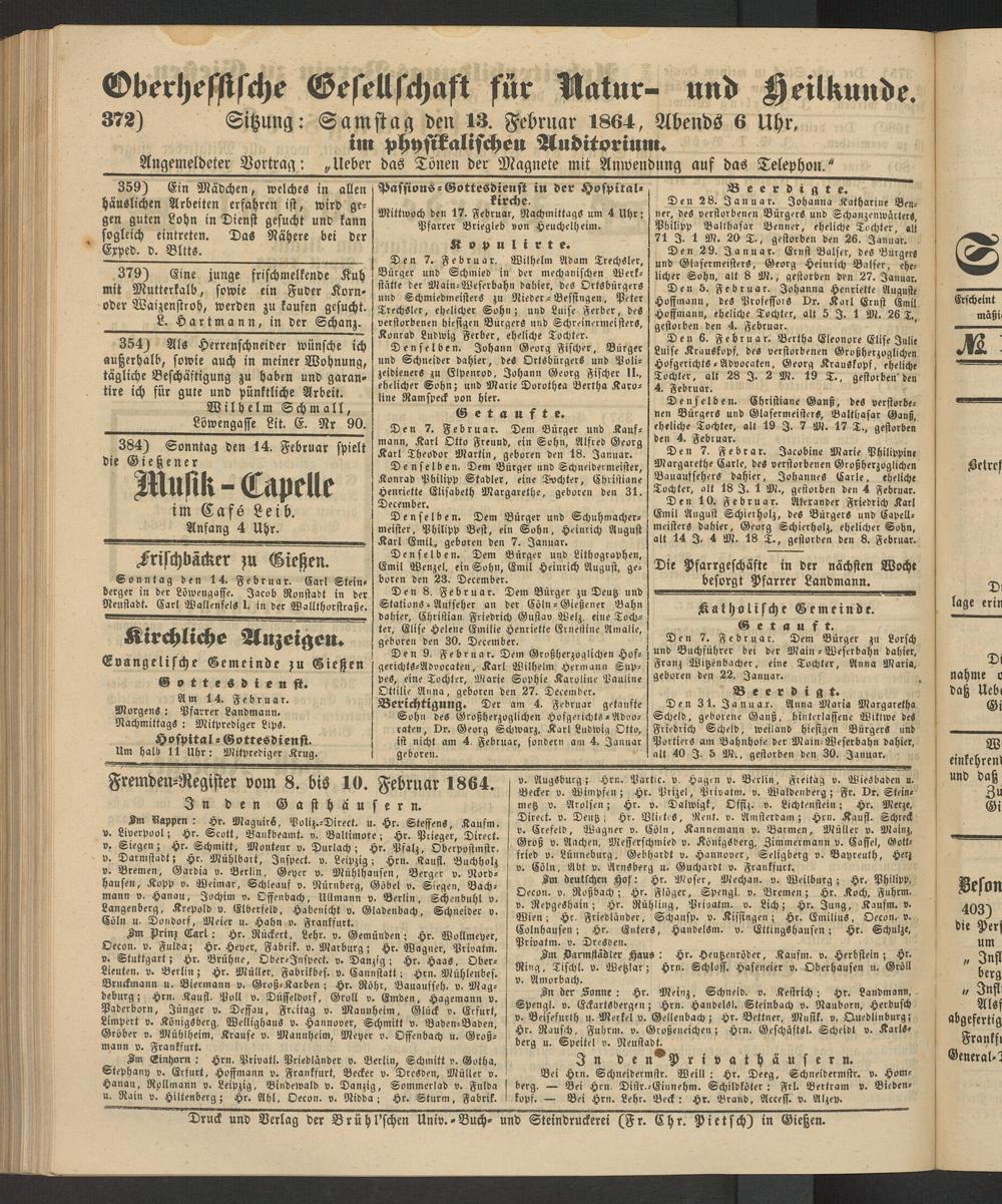372) Sitzung: Samstag den 13. Februar 1864, Abends 6 Uhr, im physikalischen Auditorium.