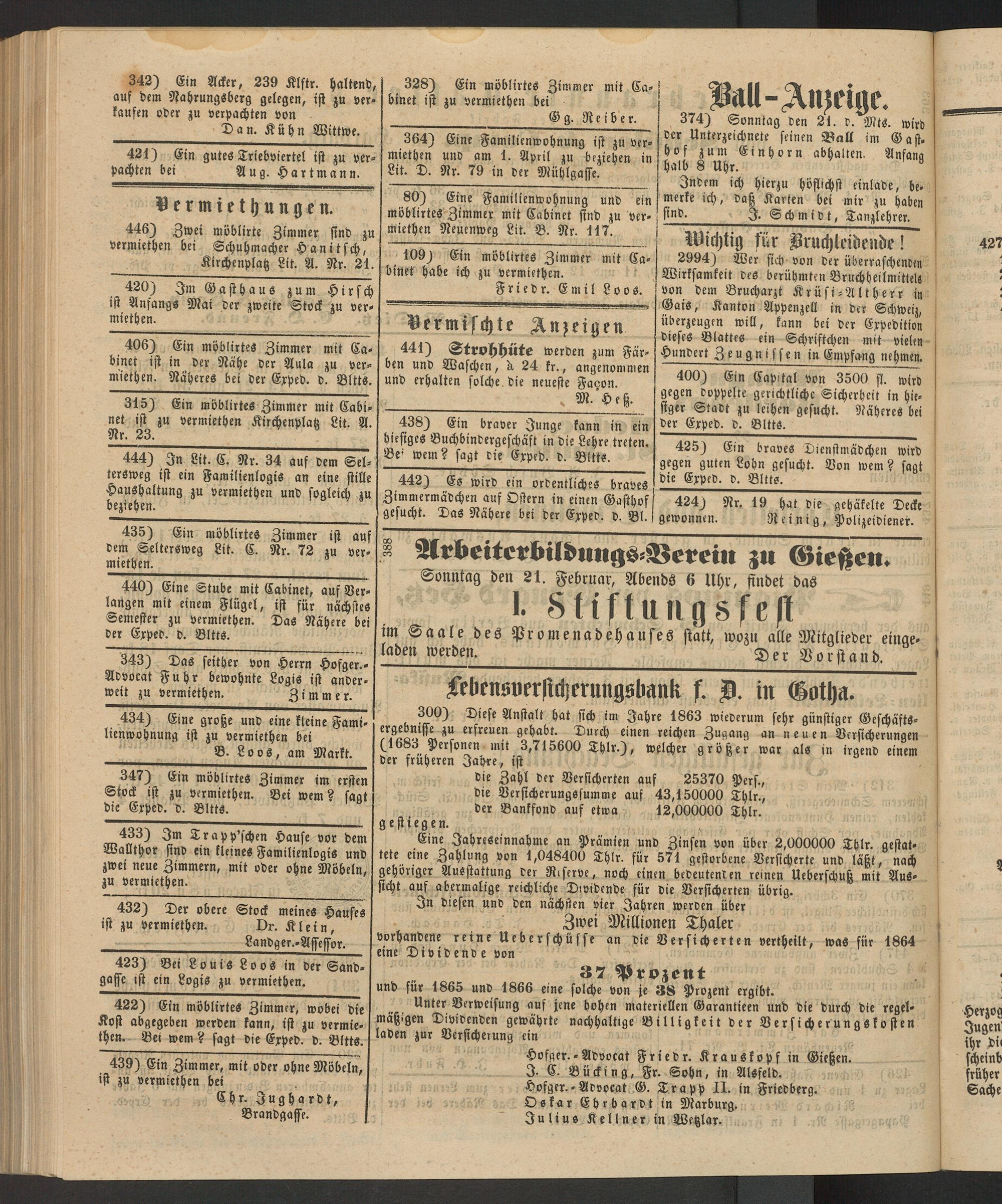 432) Der obere Stock meines Hauses ist zu vermiethen. Dr. Klein, _________________Landger.-Assessor.