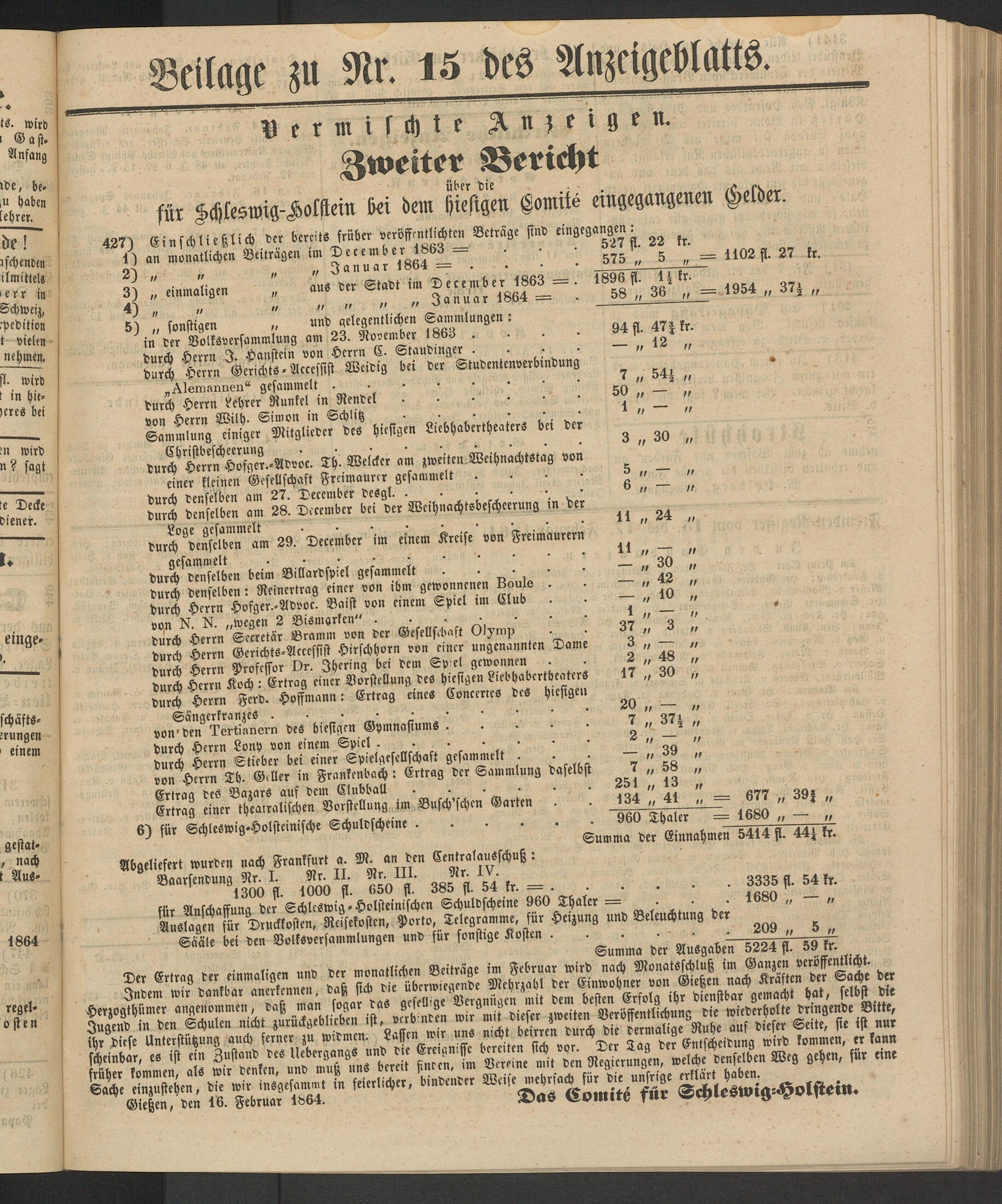 Abgeliefert wurden nach Frankfurt a. M. an den Centralausschuß: