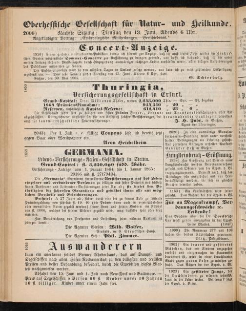 Gießen, den 30. Mai 1865. G Schicrholz.