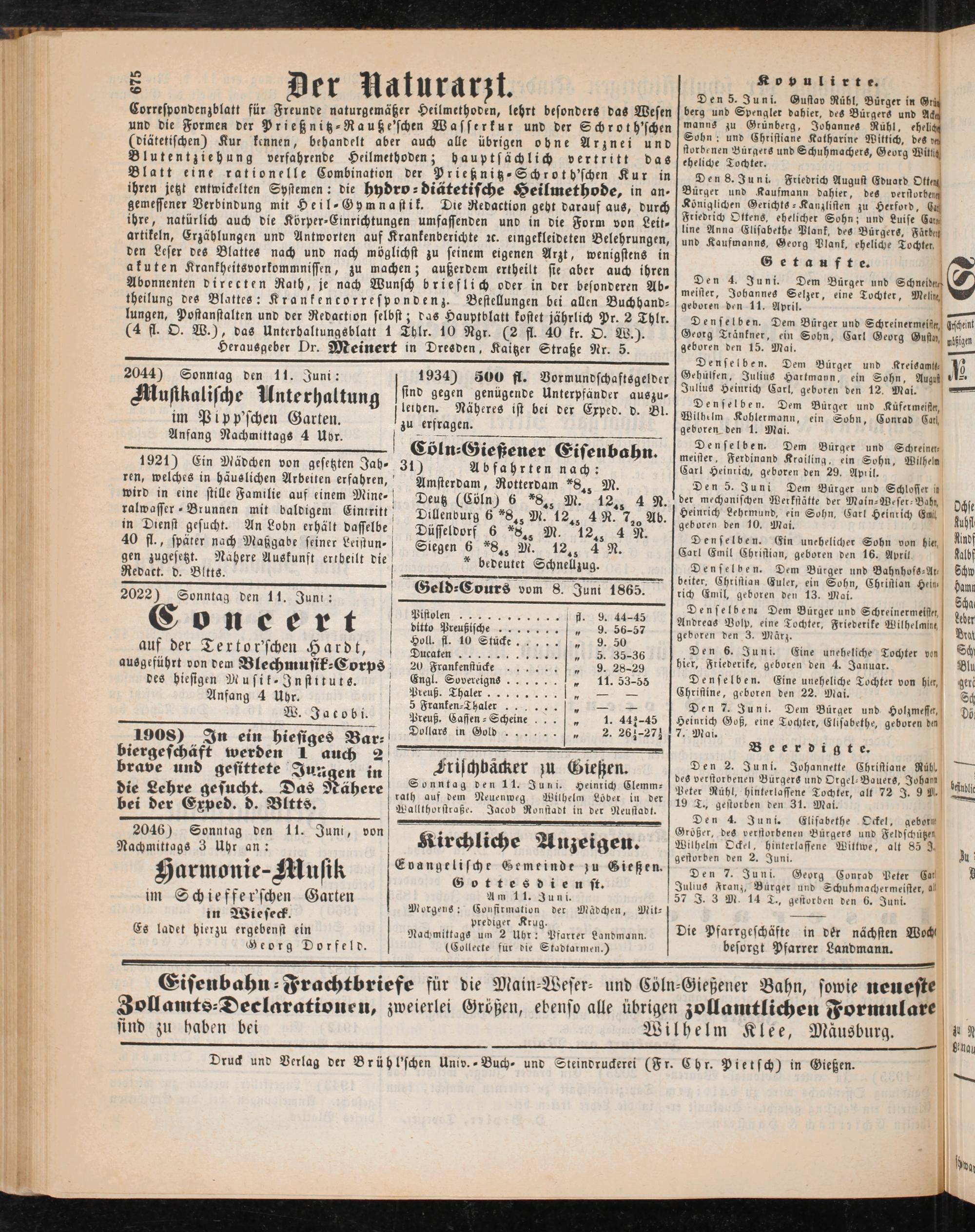 Geld-Cours vom 8. Juni 1865.