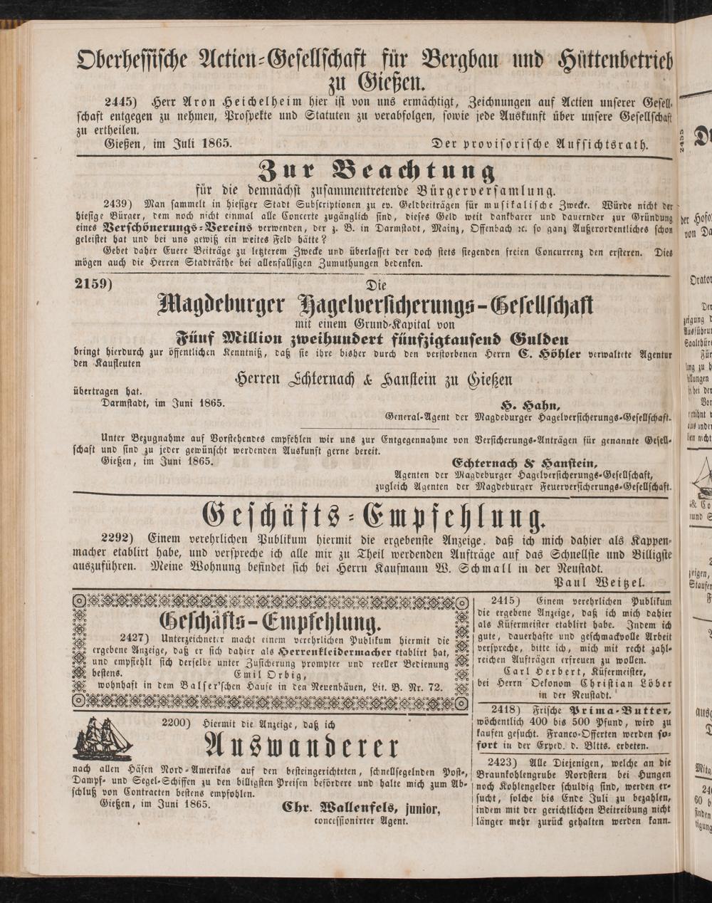 Gießen, im Juni 1865. 66r. Wallenfels, junior,