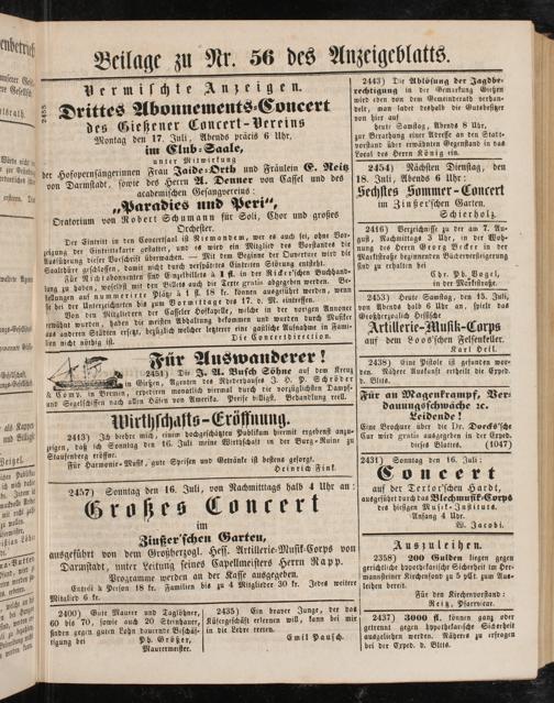 2453) Heute Samstag, den 15. Juli, von Abends halb 6 Uhr an, spielt das Großhcrzoglich Hessische
