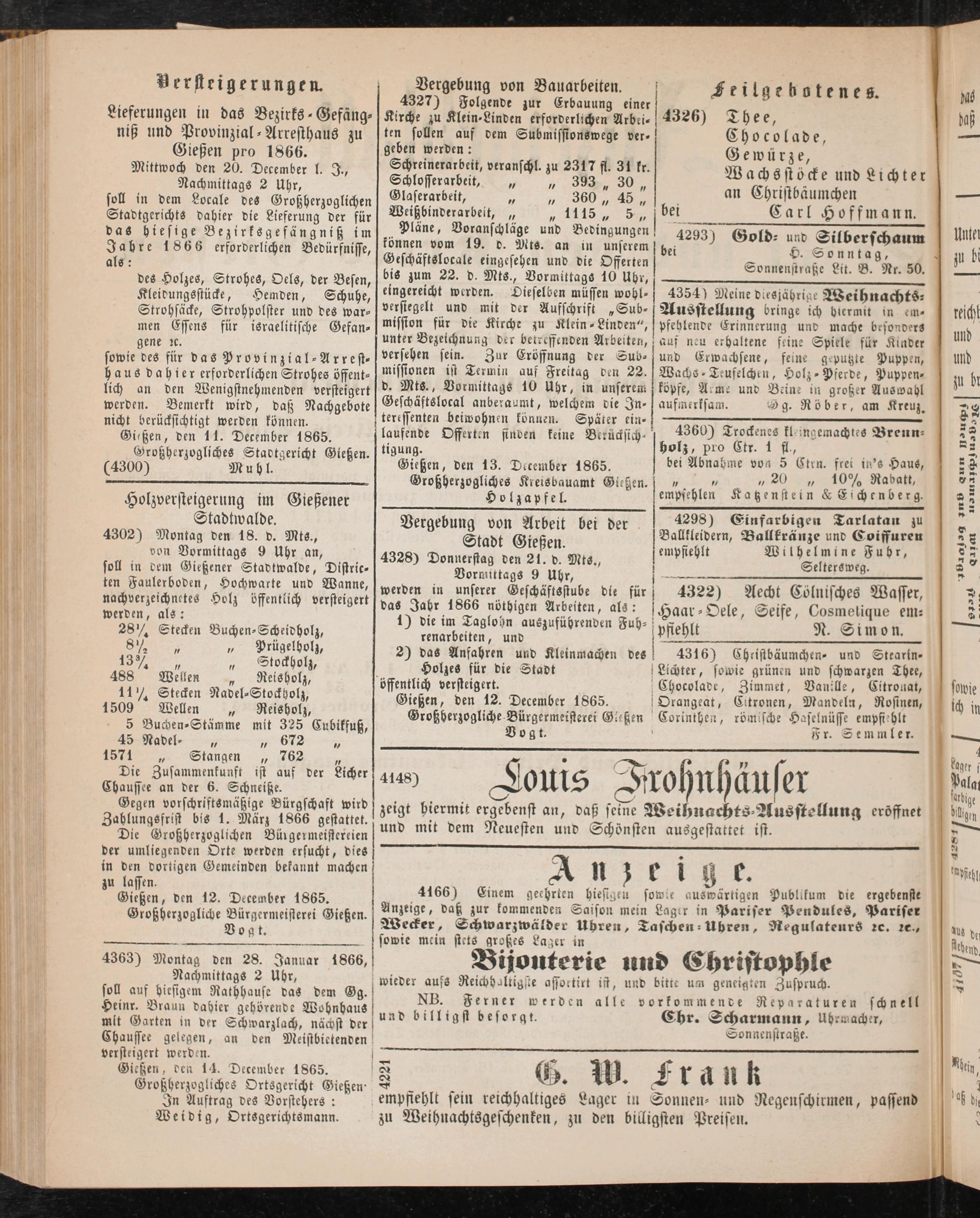 Gießen, bcn 14. December 1865.