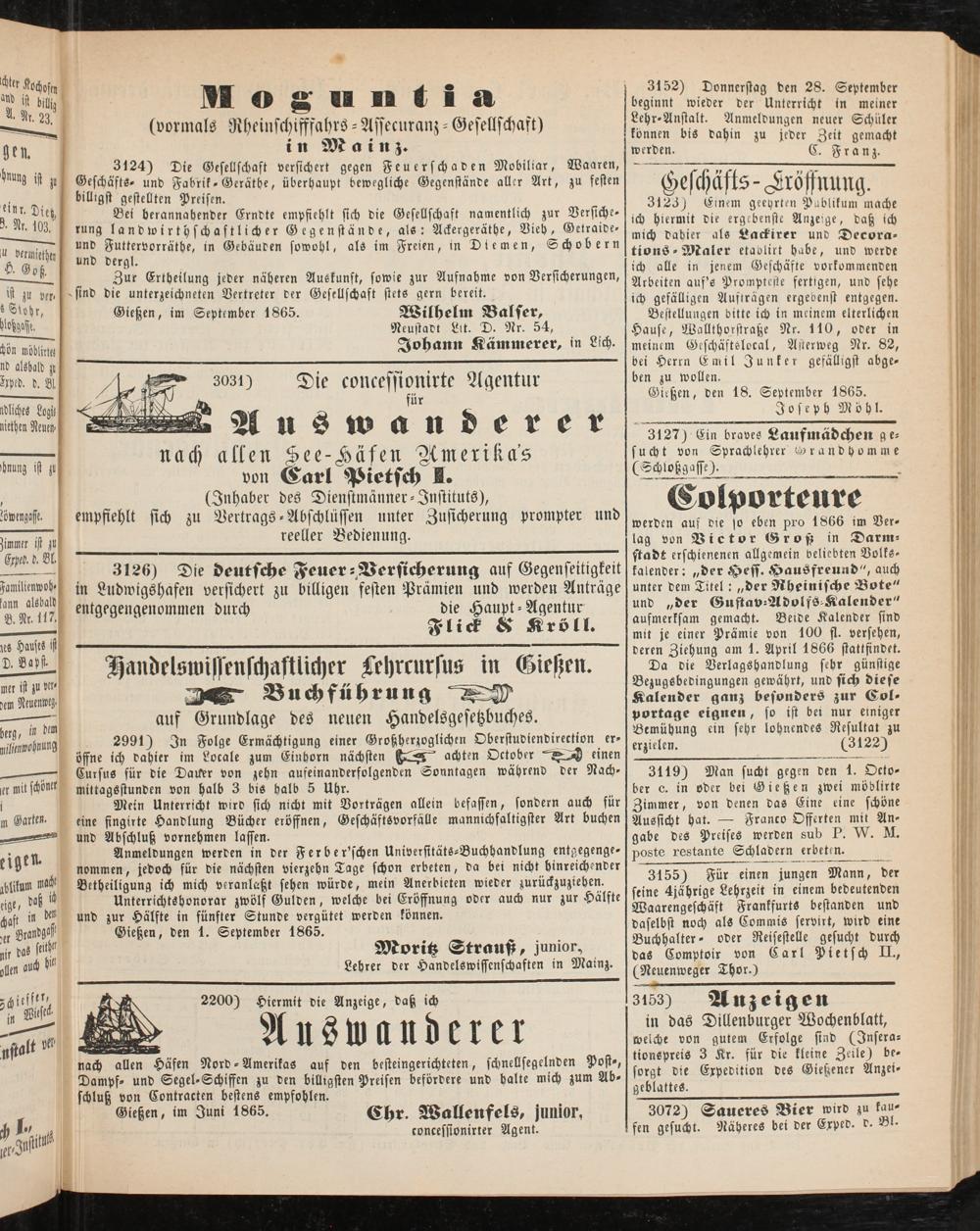 Gießen, im Juni 1865. Chr Wallenfels, junior,