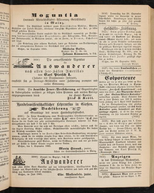 3152) Donnerstag den 28. September beginnt wieder der Unterricht in meiner Lehr-Anstalt. Anmeldungen neuer Schüler können bis dahin zu jeder Zeit gemacht werden. C. Franz.