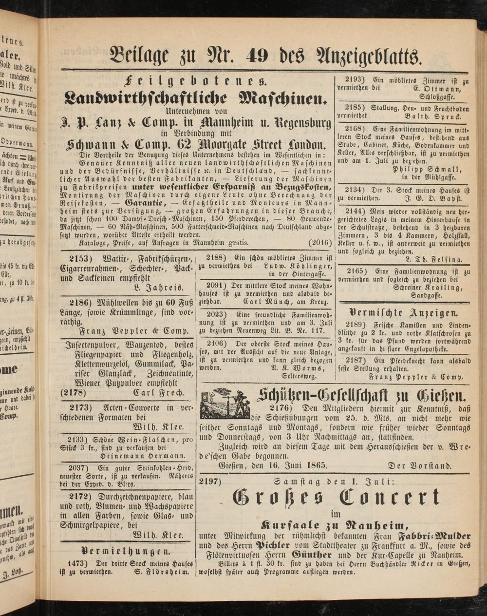 Kurfaale zu Nauheim, unter Mitwirkung der rühmlichst bekannten Frau Fabbri-Ntrrlder und des Herrn Pichler vom Stadttheater zu Frankfurt a. M., sowie des Flötenvirtuosen Herrn Günther und der Kur-Capelle zu Nauheim. Billcts L 1 fl. 30 kr. sind zu haben bei Herrn Buchhändler Ricker in Gießen, woselbst später auch Programme aufliegen werden.