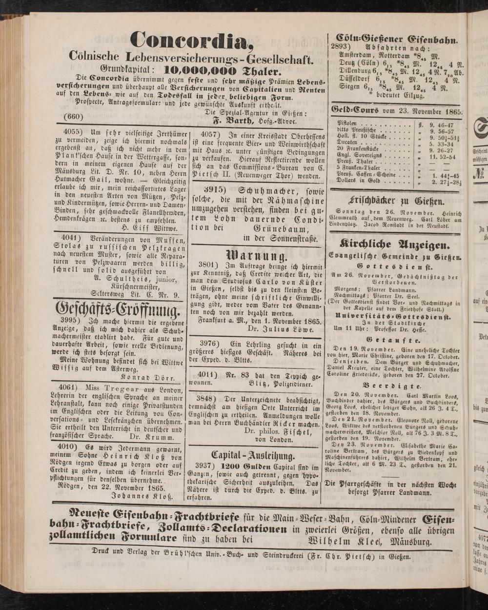 Frankfurt a. M., den 1. November 1865. Dr. Julius Löwe.