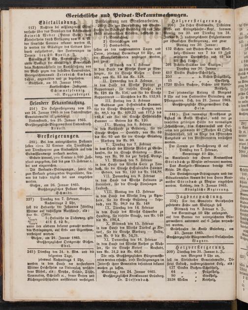 251) Die Holzversteigerung vom 23. und 24. Januar 1865 in dem Lindenstruther Gemeinvewalbe ist genehmigt.