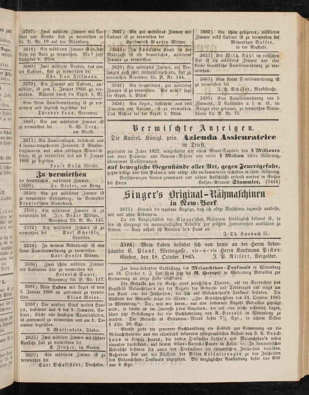 Gießen, den 18. October 1865. 3. P. Rttsert, Vergolder.