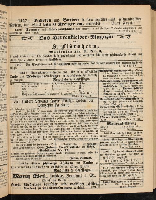 1463) % breites schwarzes Tuch, für Beduinen geeignet, die Elle zu 1 fl. 30 fr., empfiehlt