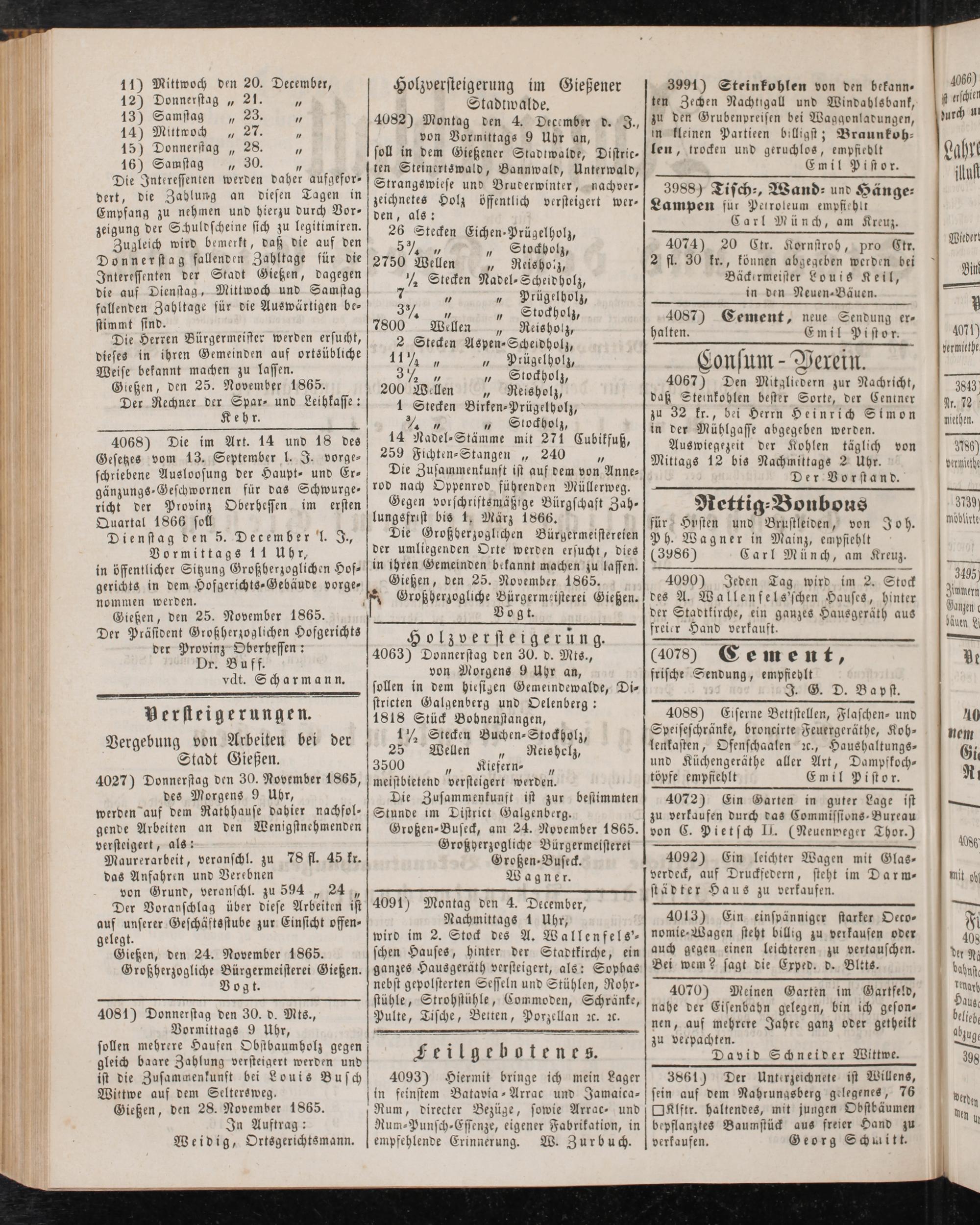 4027) Donnerstag den 30. November 1865, des Morgens 9 Uhr,