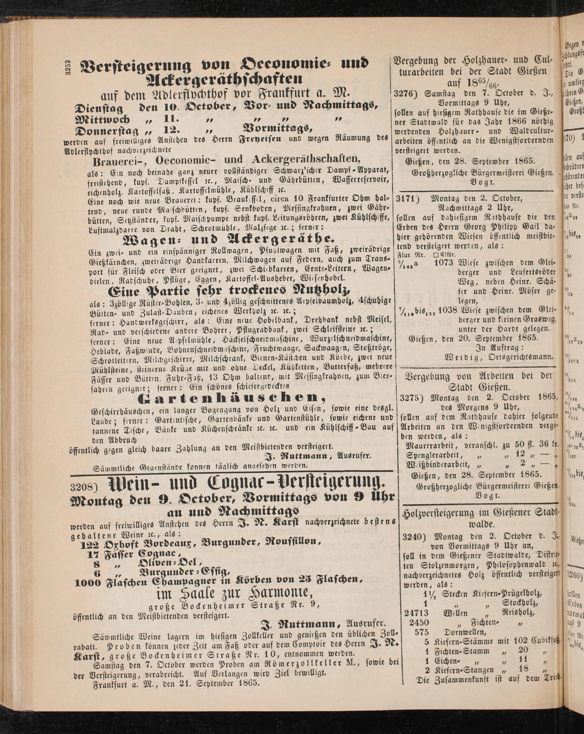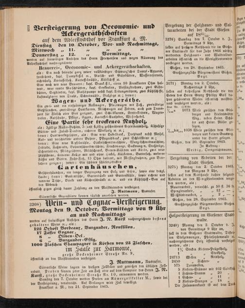 Gießen, den 28. September 1865. Großherzog'.iche Bürgermeisterei Gießen. .