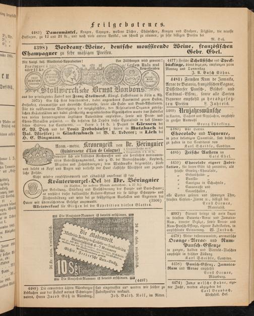 4093) Hiermit bringe ich mein Lager in feinstem Batavia - Arrac und Jamaica- Rum, virecter Bezüge, sowie Arrac- und Rum-Punsch-Esscnze, eigener Fabrikation, in empfehlende Erinnerung. W. Zur buch.