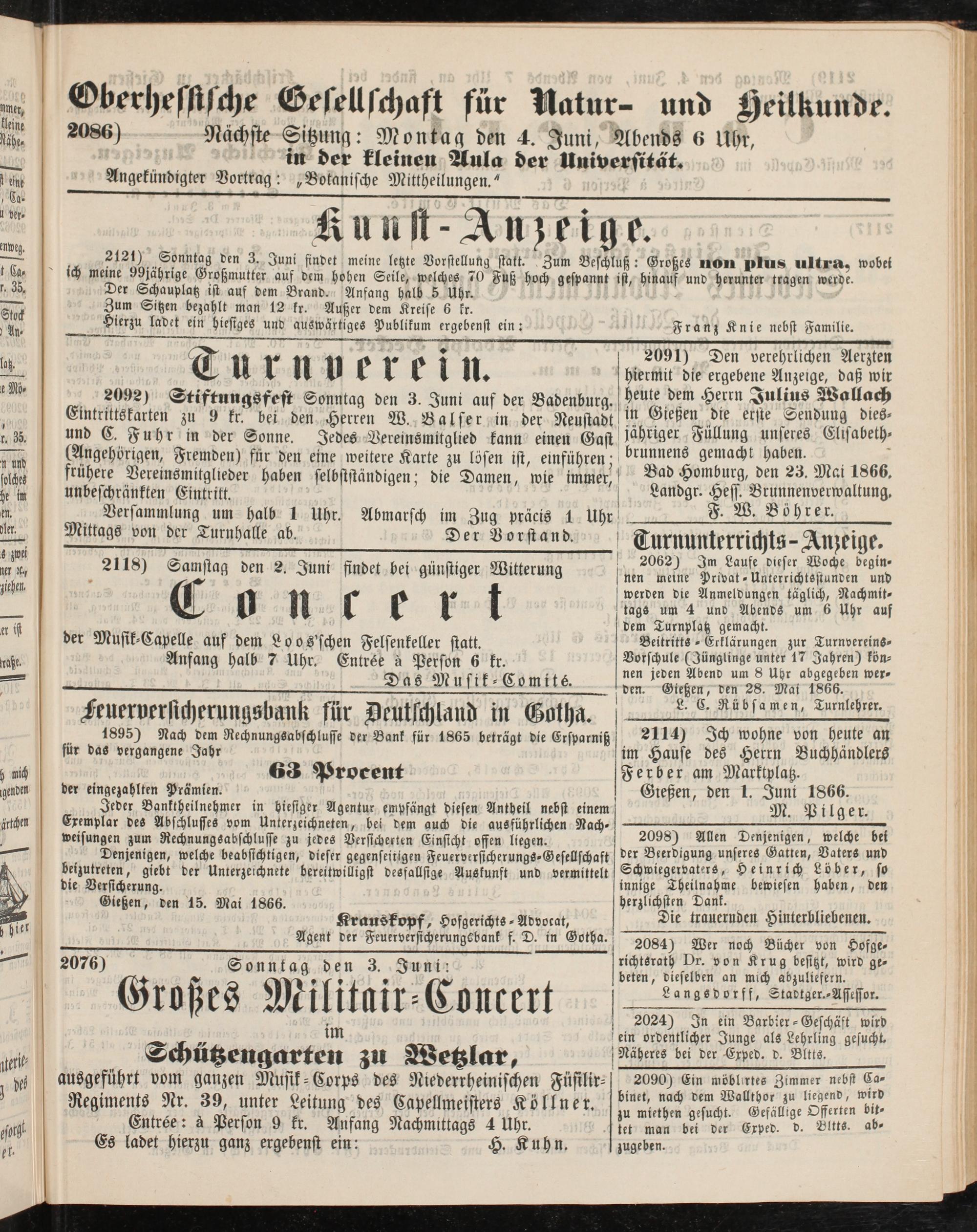 Gießen, den 1. Juni 1866. ________________M. Pilger.