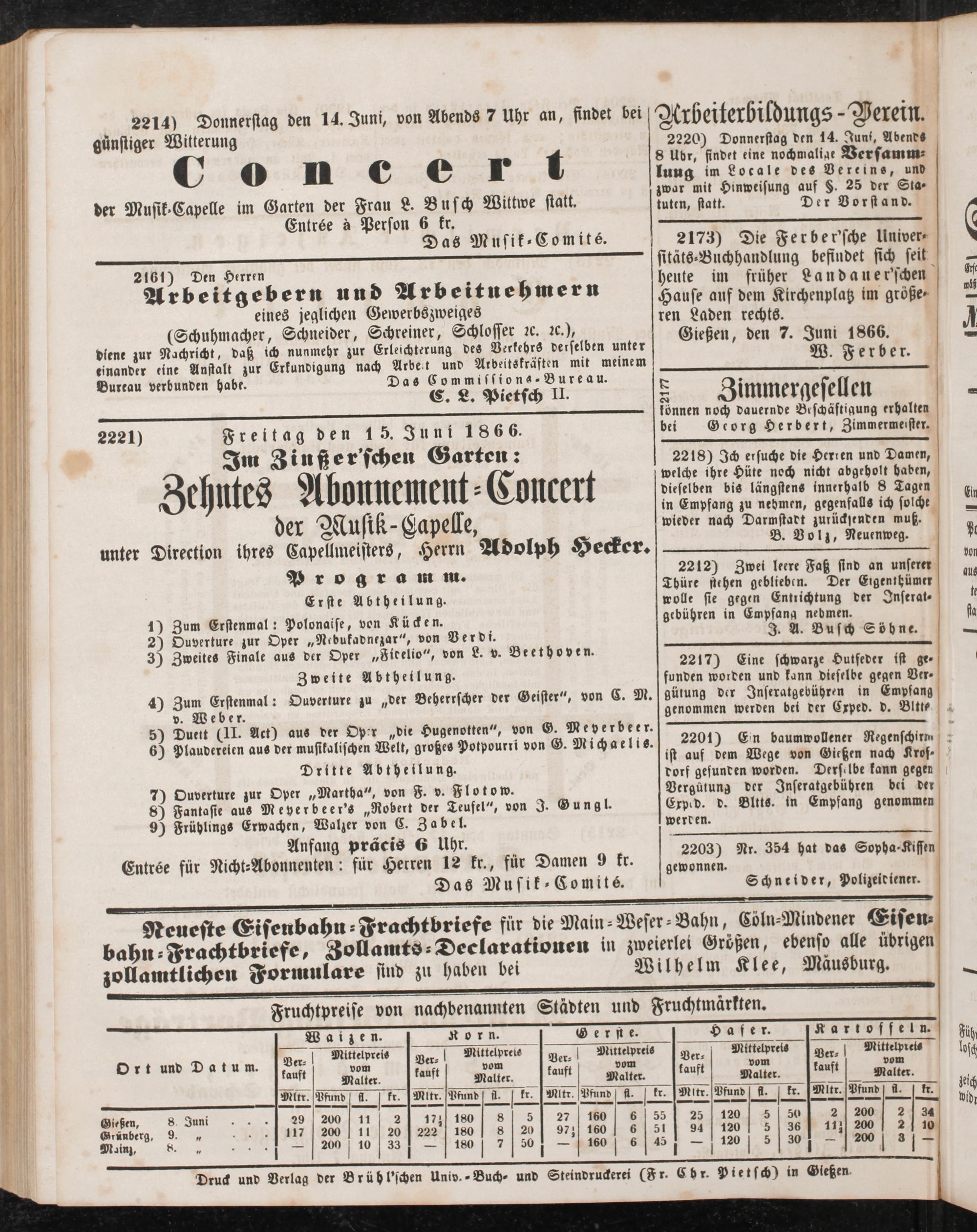 2214) Donnerstag den 14. Juni, von Abends 7 Uhr an, finde! bei günstiger Witterung