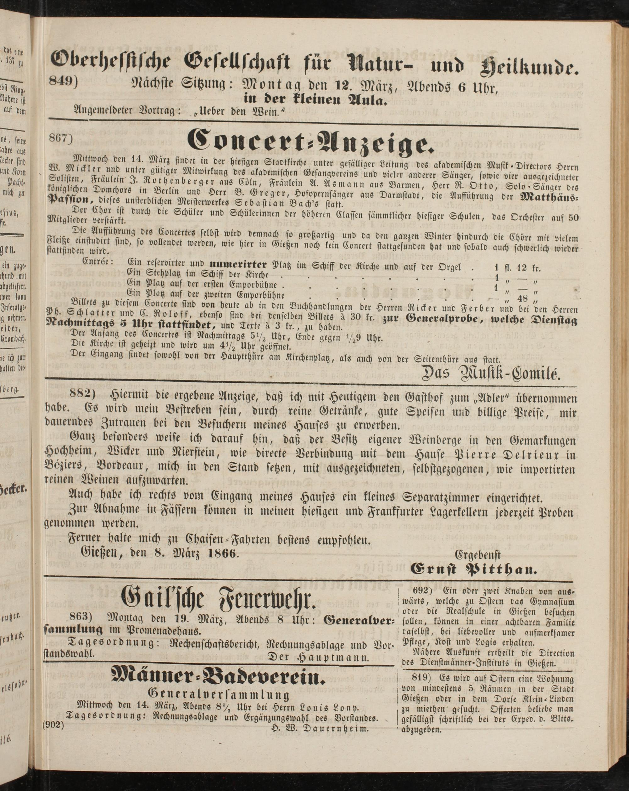 Gieße», den 8. März 1866. Ergebenst