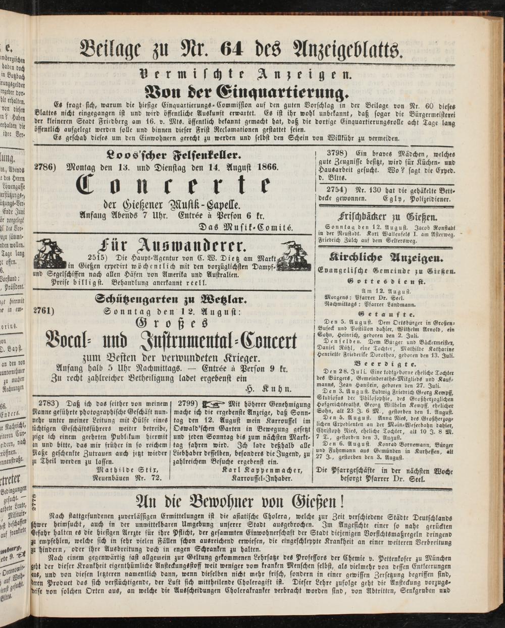 2786) Montag den 13. und Dienstag den 14, August 1866.