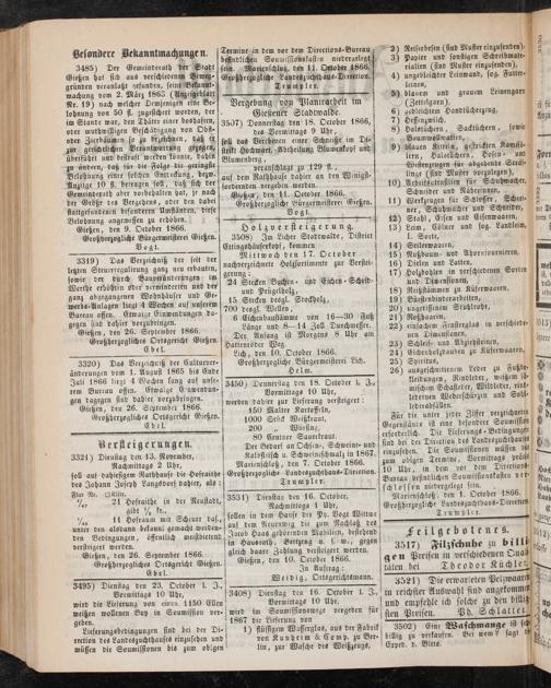 Gießen, den 11. October 1866. Großherzogliche Bürgermeisterei Gießen. _____ Vogt. ________