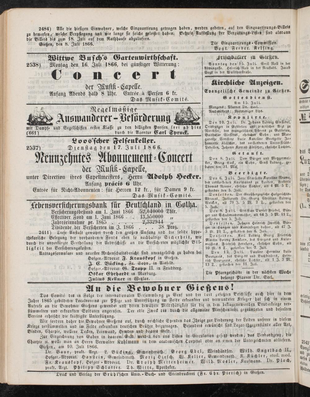 Gießen, den 8. Juli 1866. Die Einquartirung« - Commission.