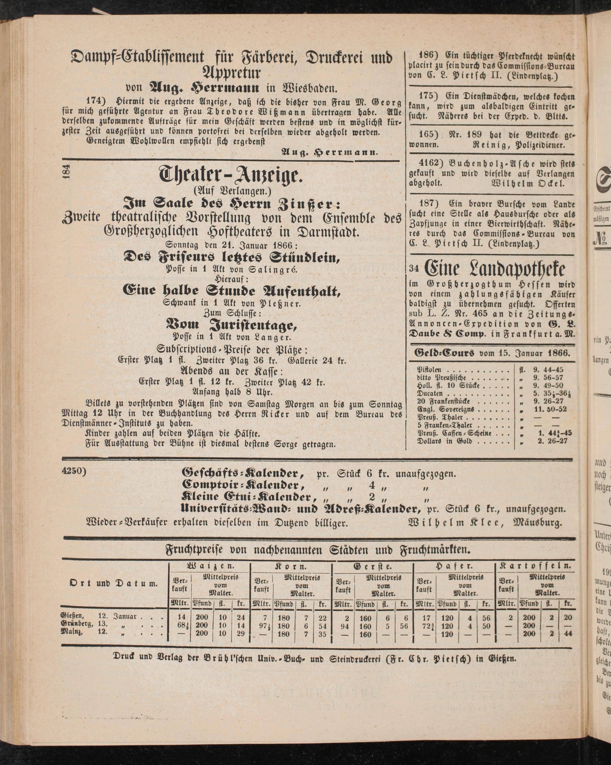 Geld-Cours vom 15. Januar 1866.