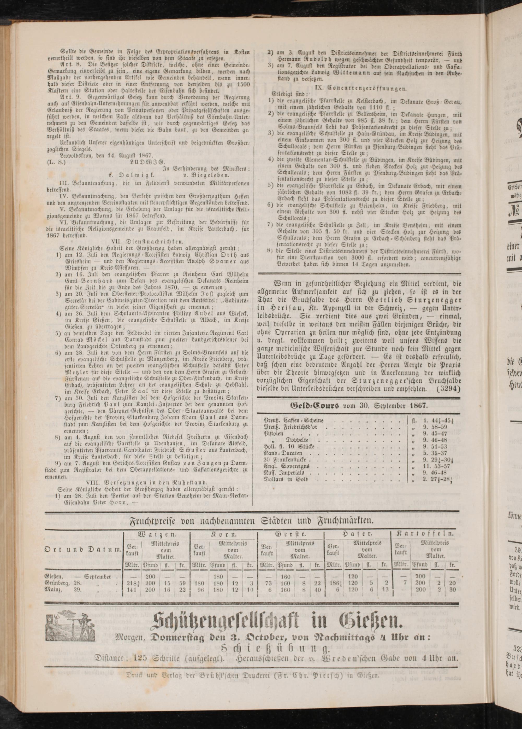 Geld-Eours vom 30. September 1867.