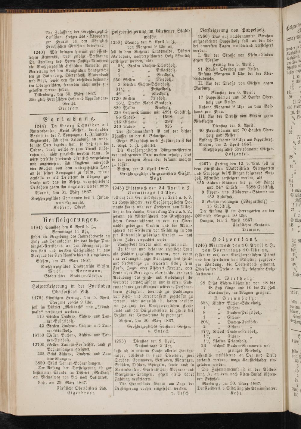 Hungen, den 1. April 1867.